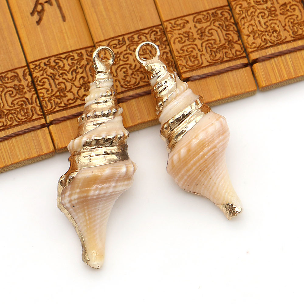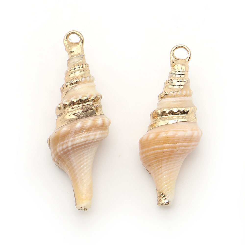 Shell Medálok, Héj, -val Sárgaréz, Kagyló, galvanizált, DIY, kevert színek, 13x33mm-13x36mm, Által értékesített PC
