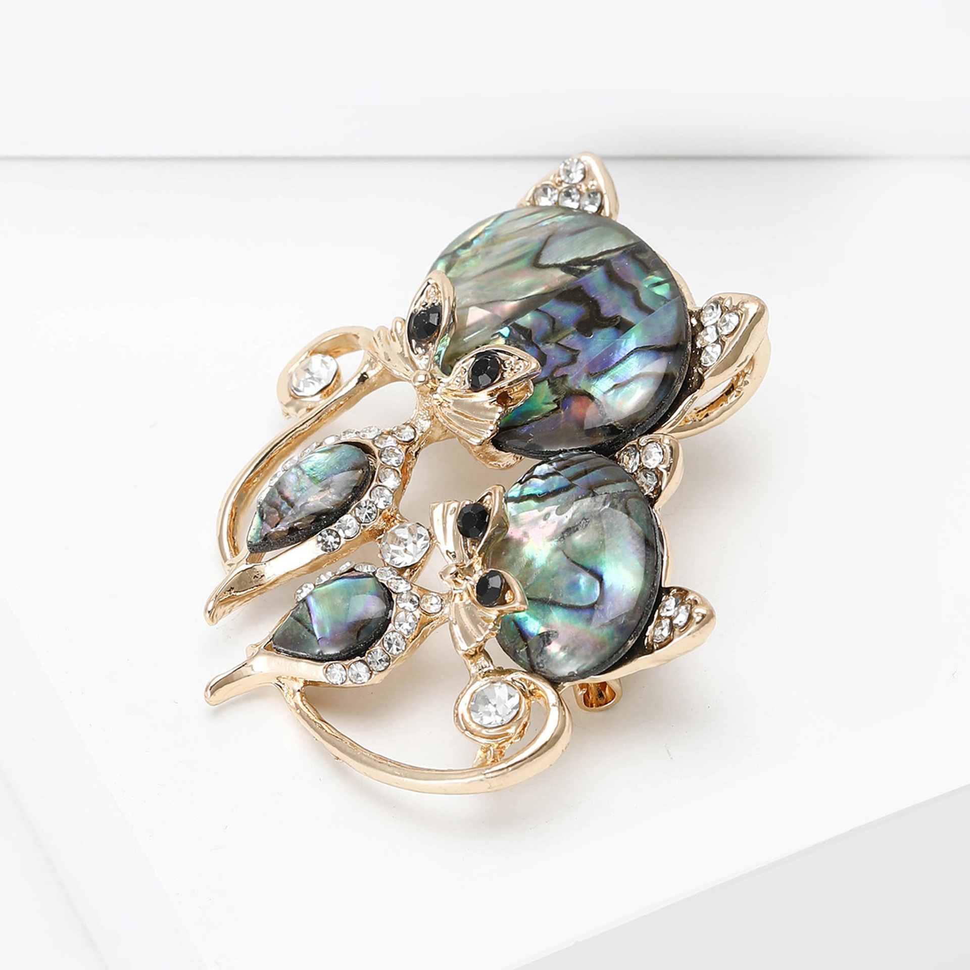 Shell bross, Abalone Shell, -val Cink ötvözet, Macska, arany színű aranyozott, divat ékszerek & strasszos, kevert színek, Által értékesített PC