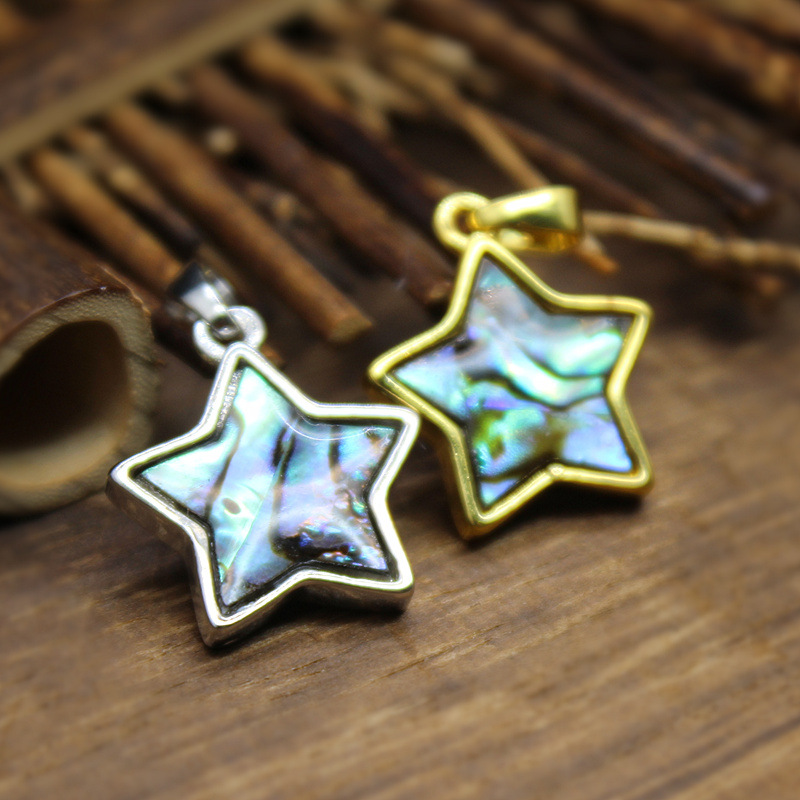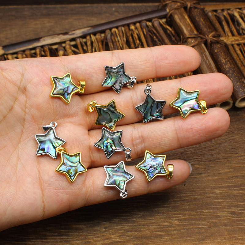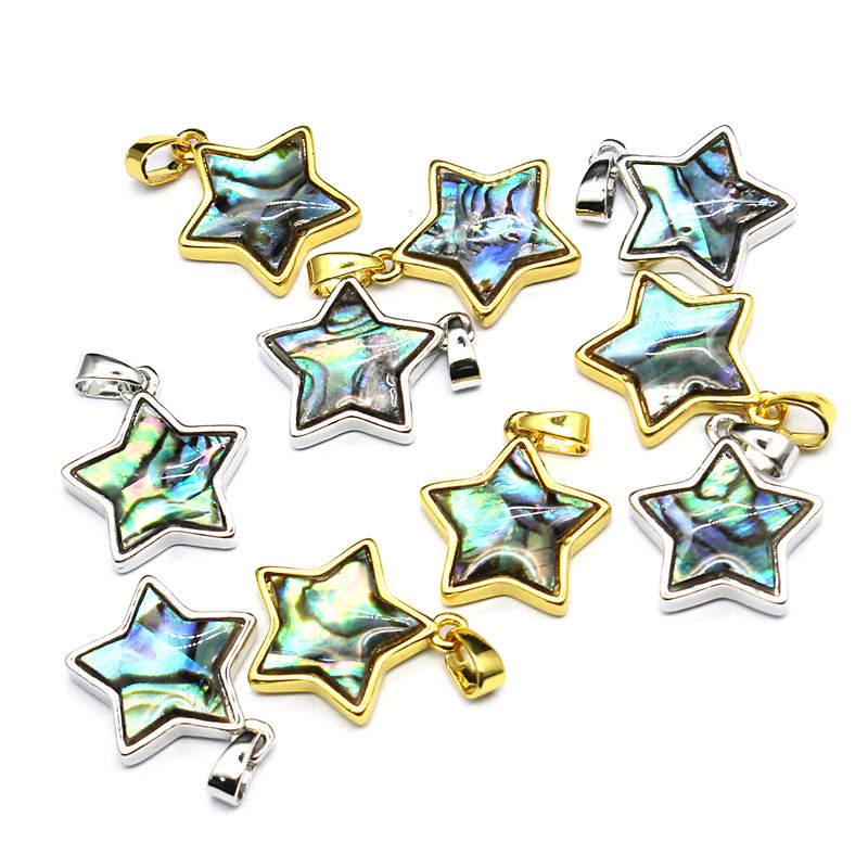Természetes Abalone Shell Medálok, -val Sárgaréz & Cink ötvözet, Csillag, DIY, több színt a választás, 17x15x4mm, Által értékesített PC