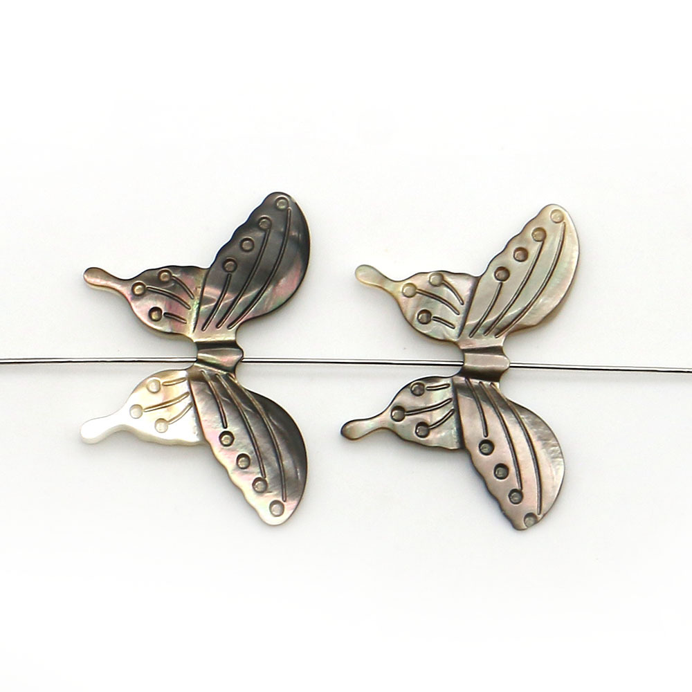 Természetes Édesvízi Shell gyöngyök, Fekete + LIP + Shell, Pillangó, DIY, 20x29mm, Által értékesített PC