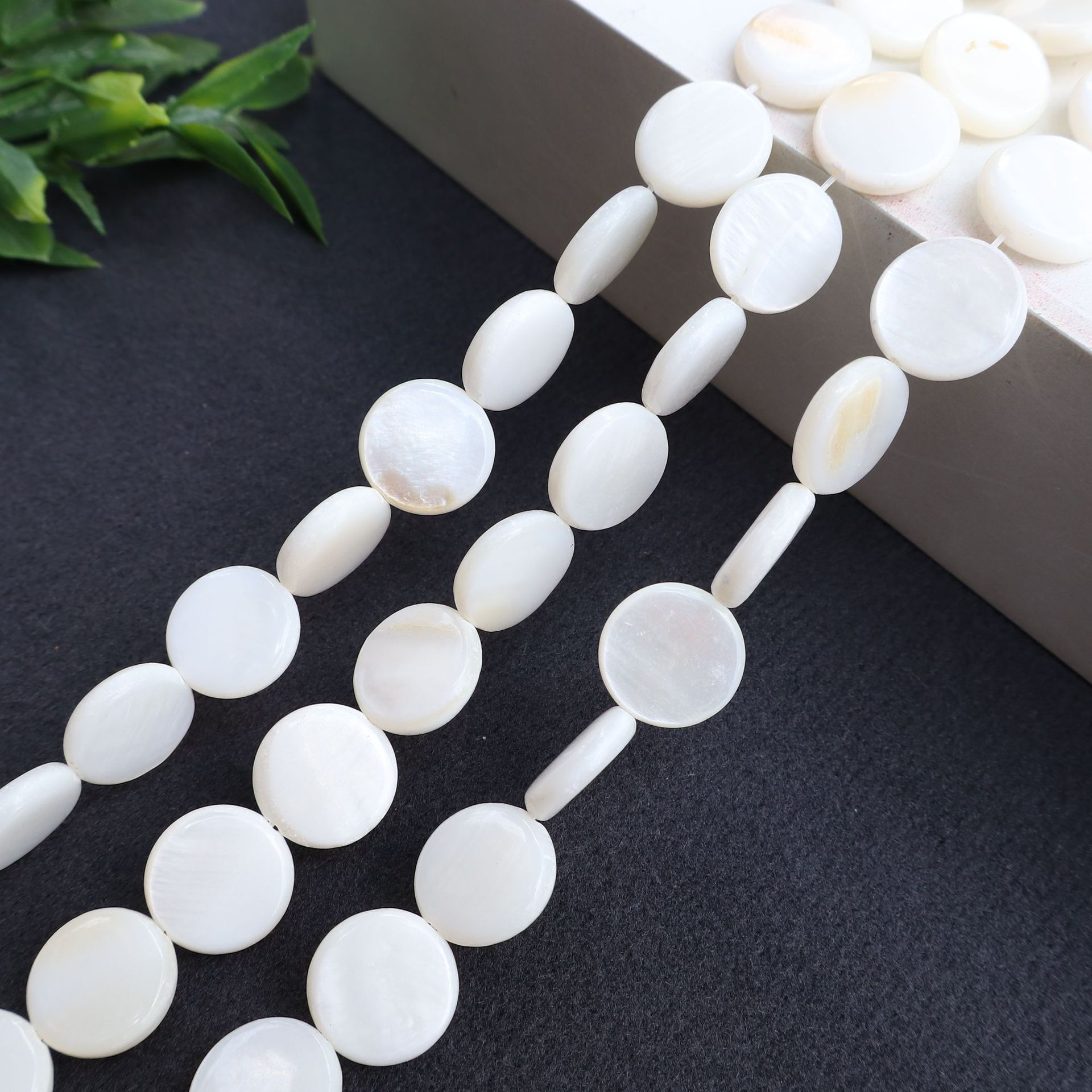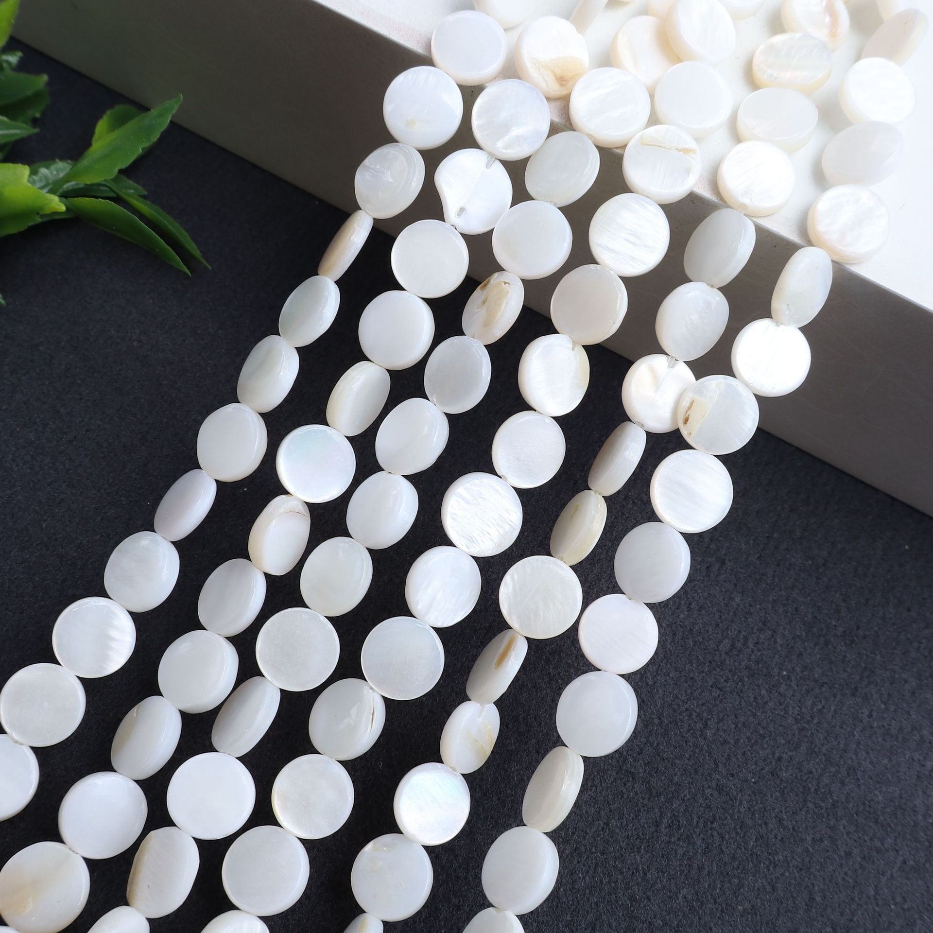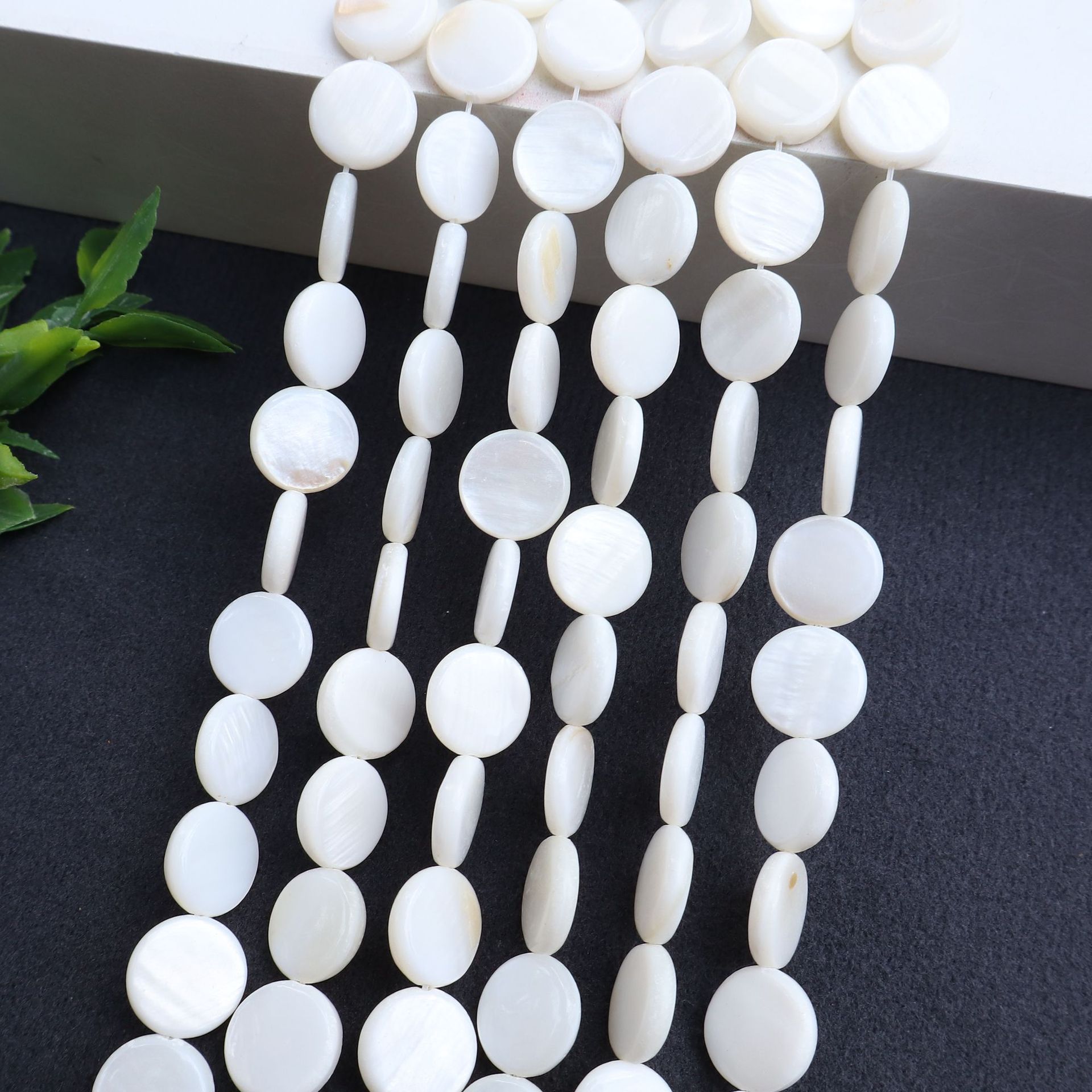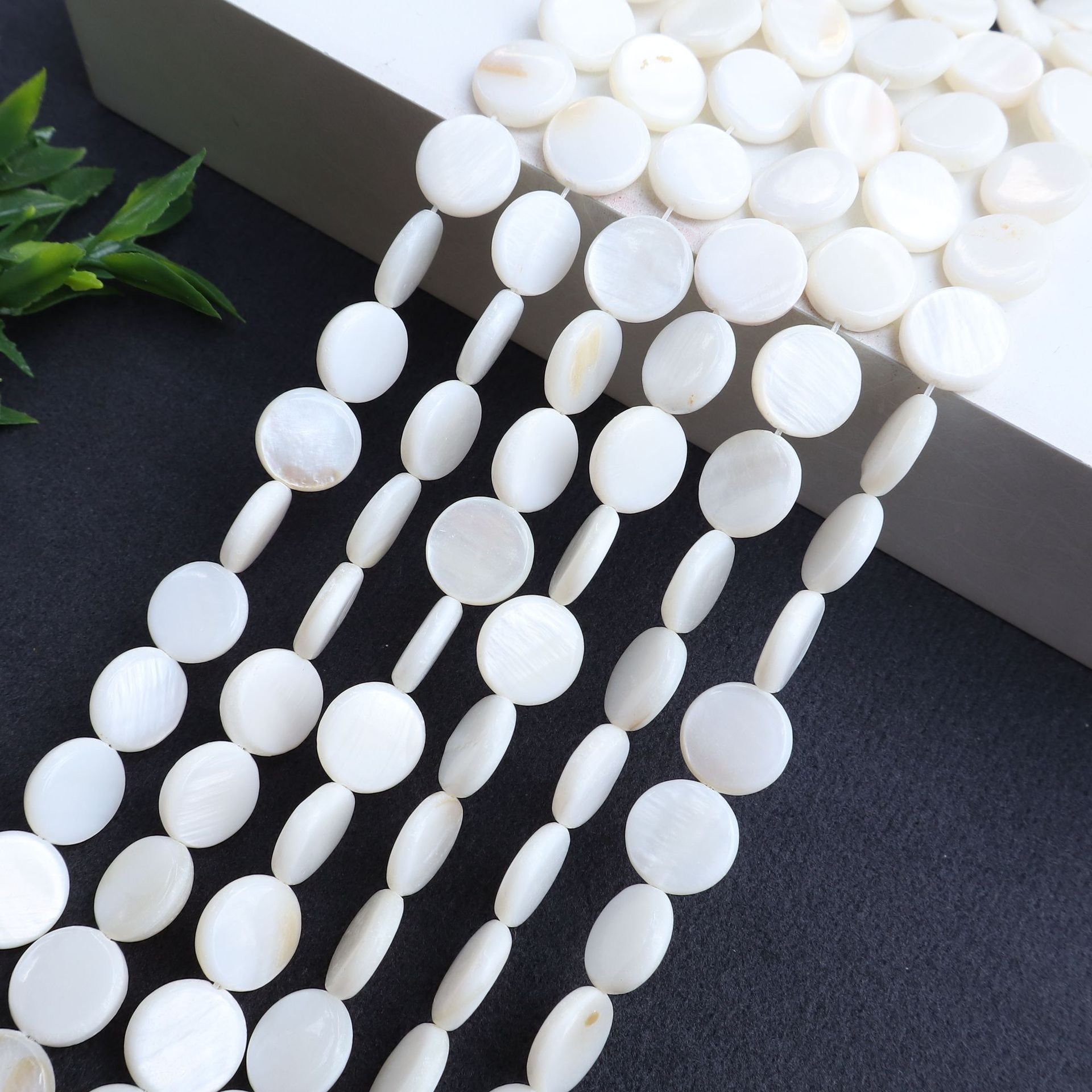 Természetes Édesvízi Shell gyöngyök, Héj, Lapos kerek, DIY, fehér, Naponta eladott 38 cm Strand