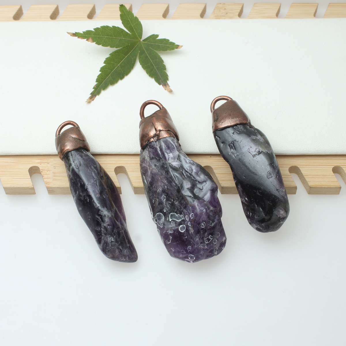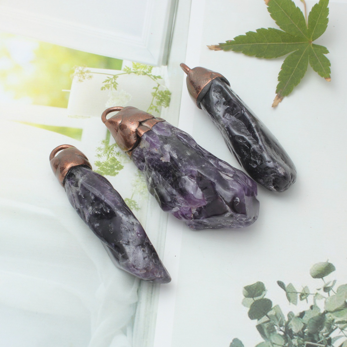 Természetes Quartz Medálok, Ametiszt, -val Cink ötvözet, Szabálytalan, DIY, 20x60mm, Által értékesített PC