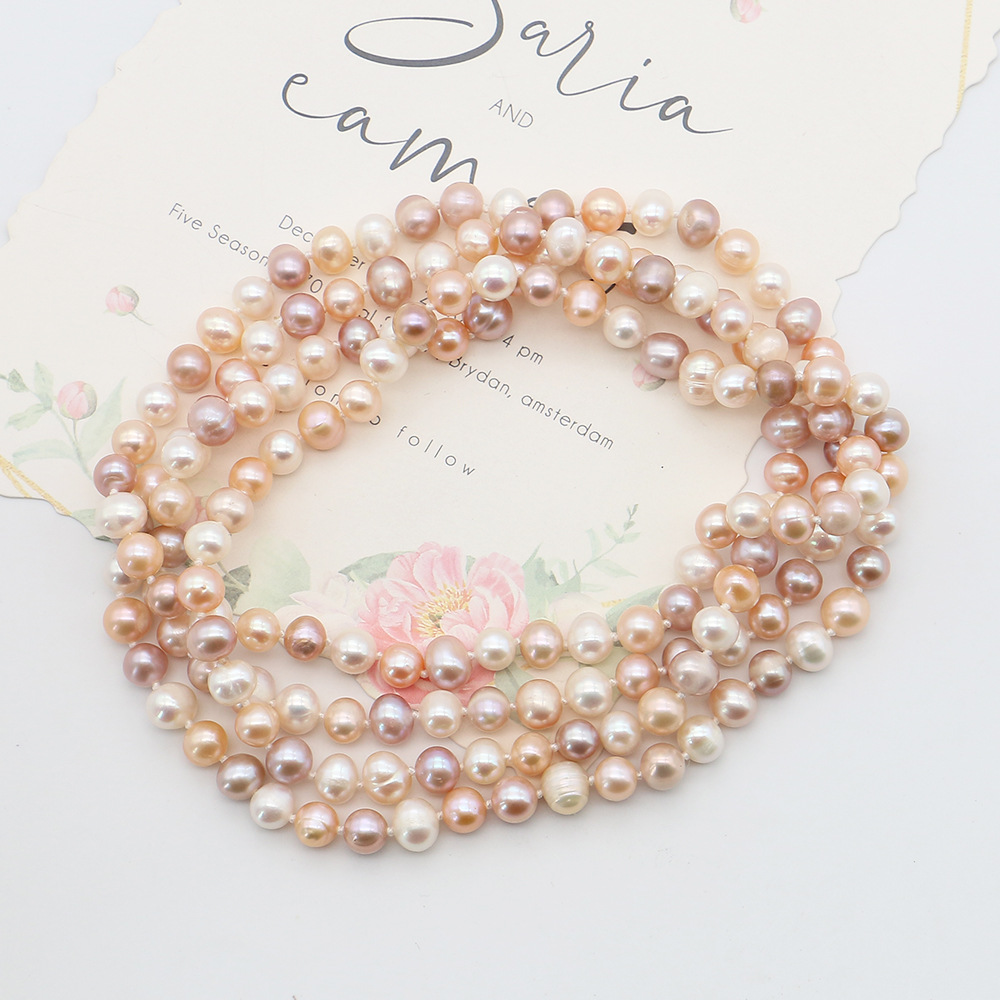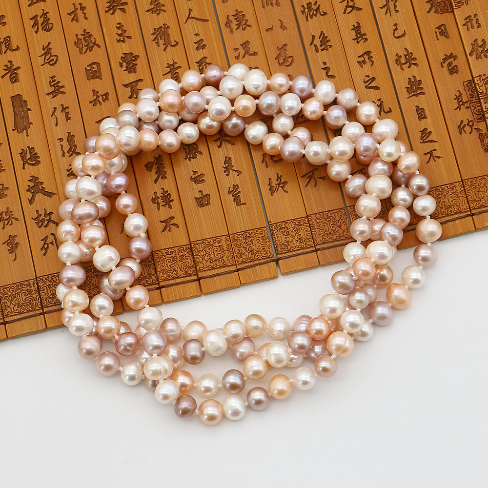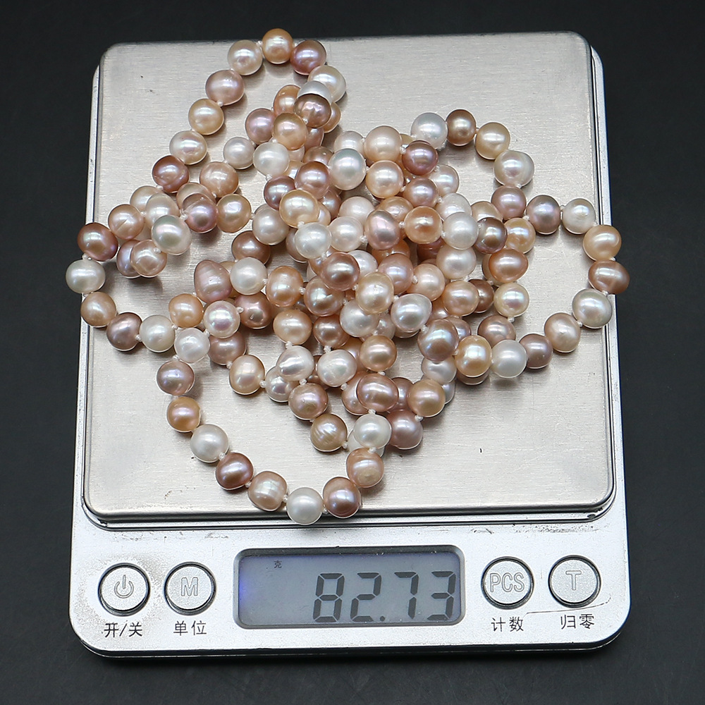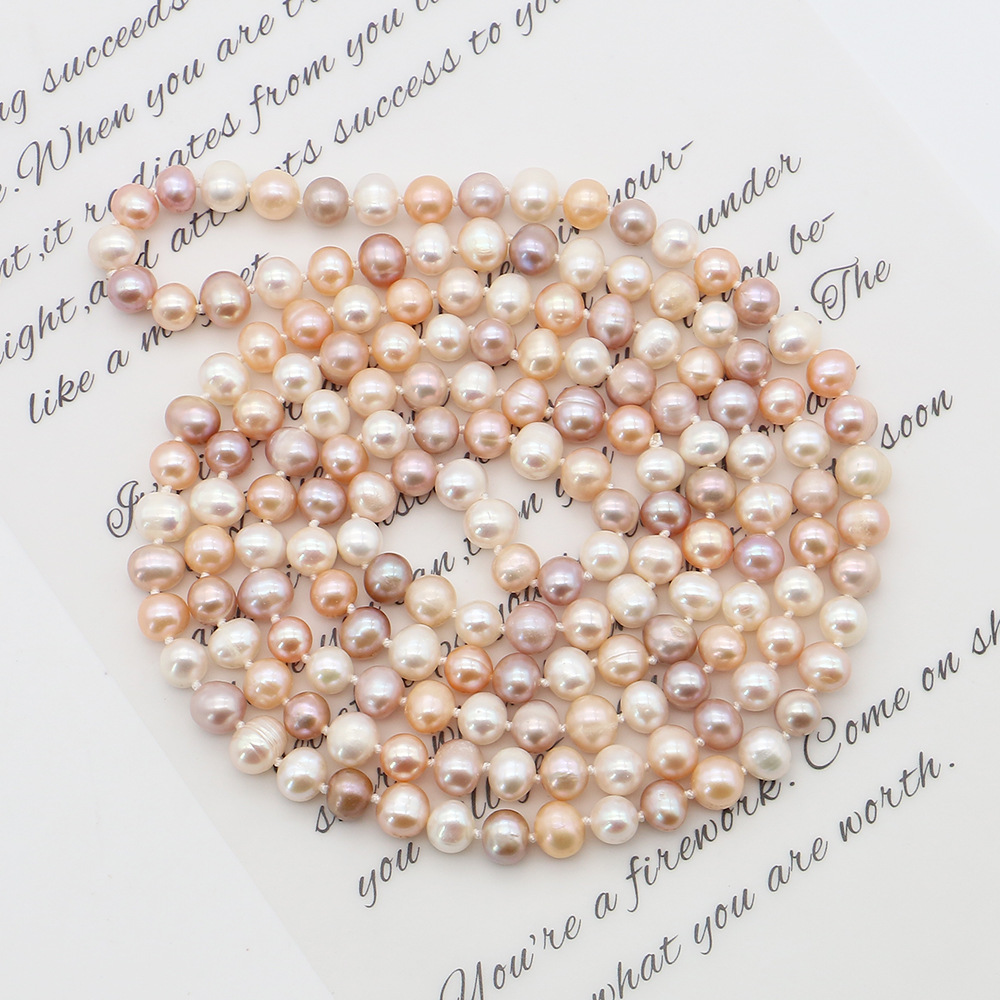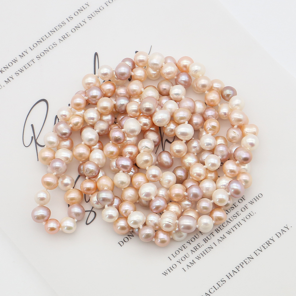 Természetes a édesvízi gyöngy hosszú nyaklánc, Édesvízi gyöngy, Kerek, divat ékszerek, fehér, 7-8mm, Hossz 120 cm, Által értékesített Set