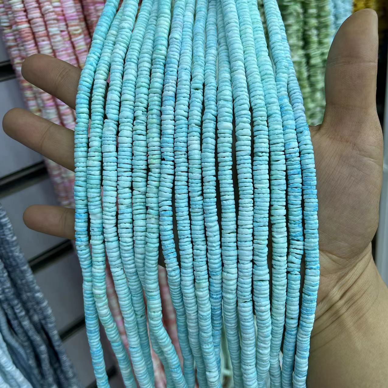 Természetes színű Shell gyöngyök, Top Shell, DIY, több színt a választás, 2x3mm, Kb 180PC-k/Strand, Által értékesített Strand