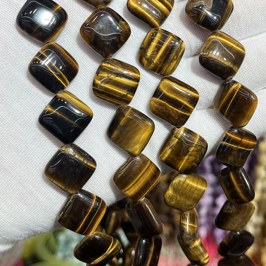 Tiger Eye Gyöngyök, Rombusz, DIY, kevert színek, 15mm, Naponta eladott 38 cm Strand