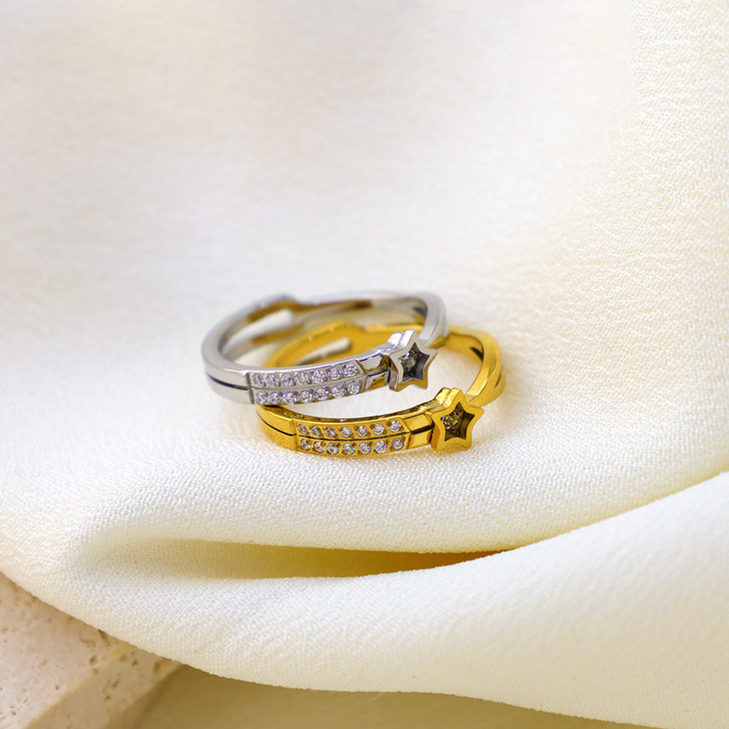 Titantium Steel Finger Ring, Titanium Steel, galvanizált, különböző méretű a választás & a nő & strasszos, több színt a választás, 4mm, Által értékesített PC