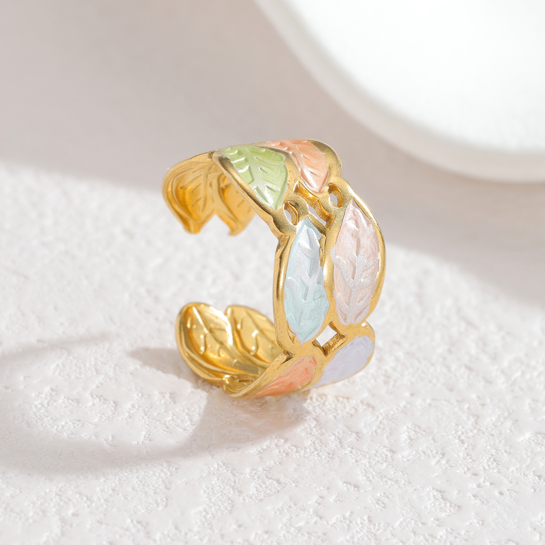 Tűzzománc Rozsdamentes acél Ujj gyűrű, 304 rozsdamentes acél, arany színű aranyozott, a nő & üreges, több színt a választás, Által értékesített PC