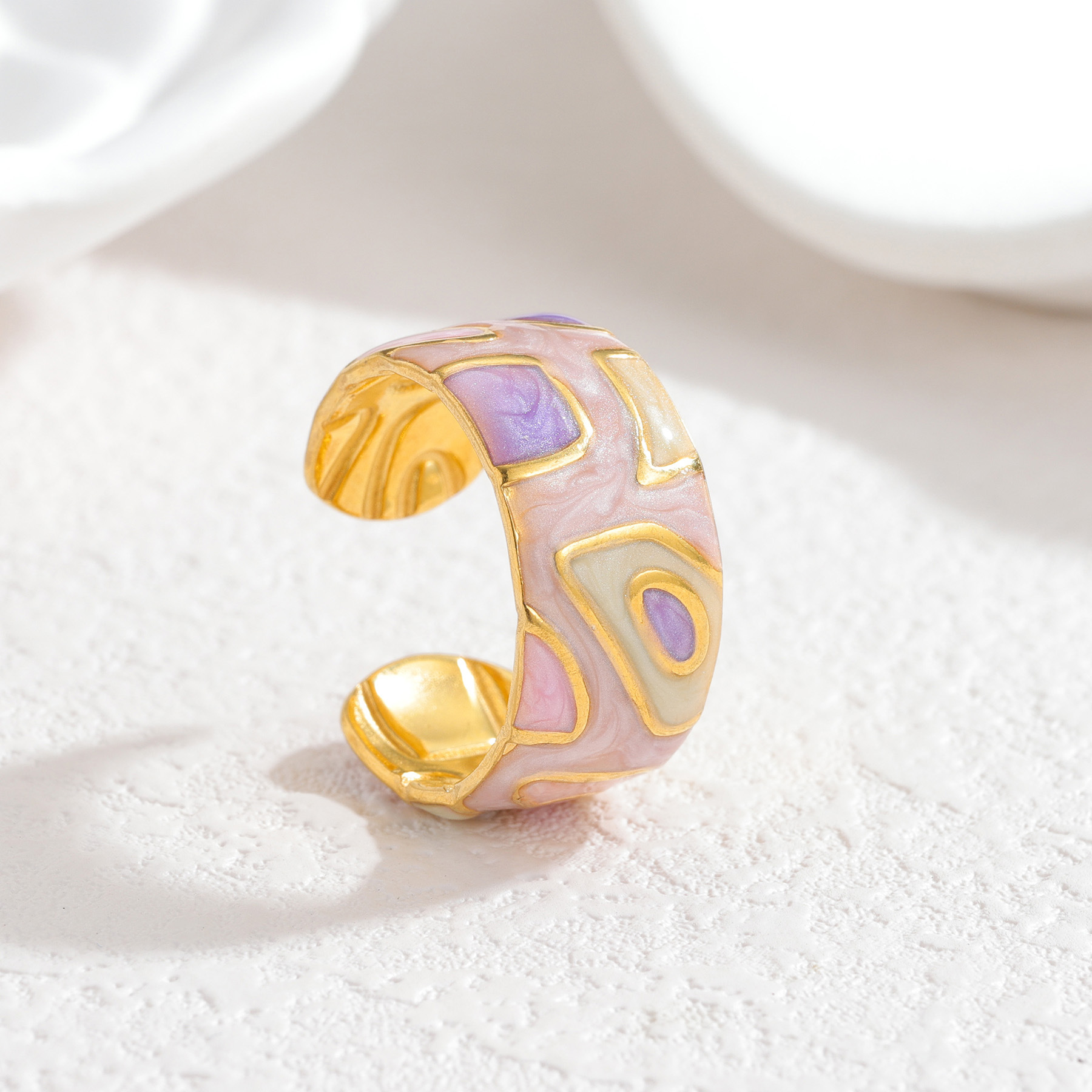 Tűzzománc Rozsdamentes acél Ujj gyűrű, 304 rozsdamentes acél, arany színű aranyozott, divat ékszerek & a nő, több színt a választás, Által értékesített PC