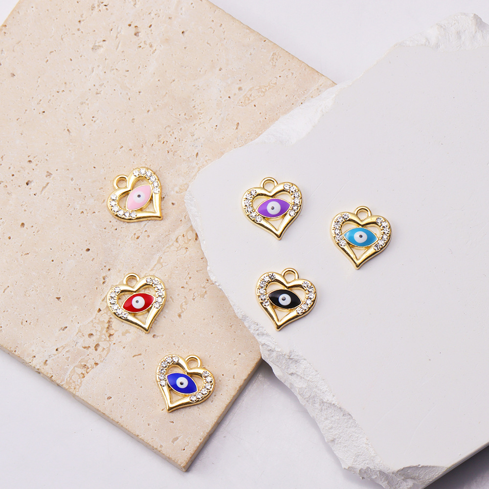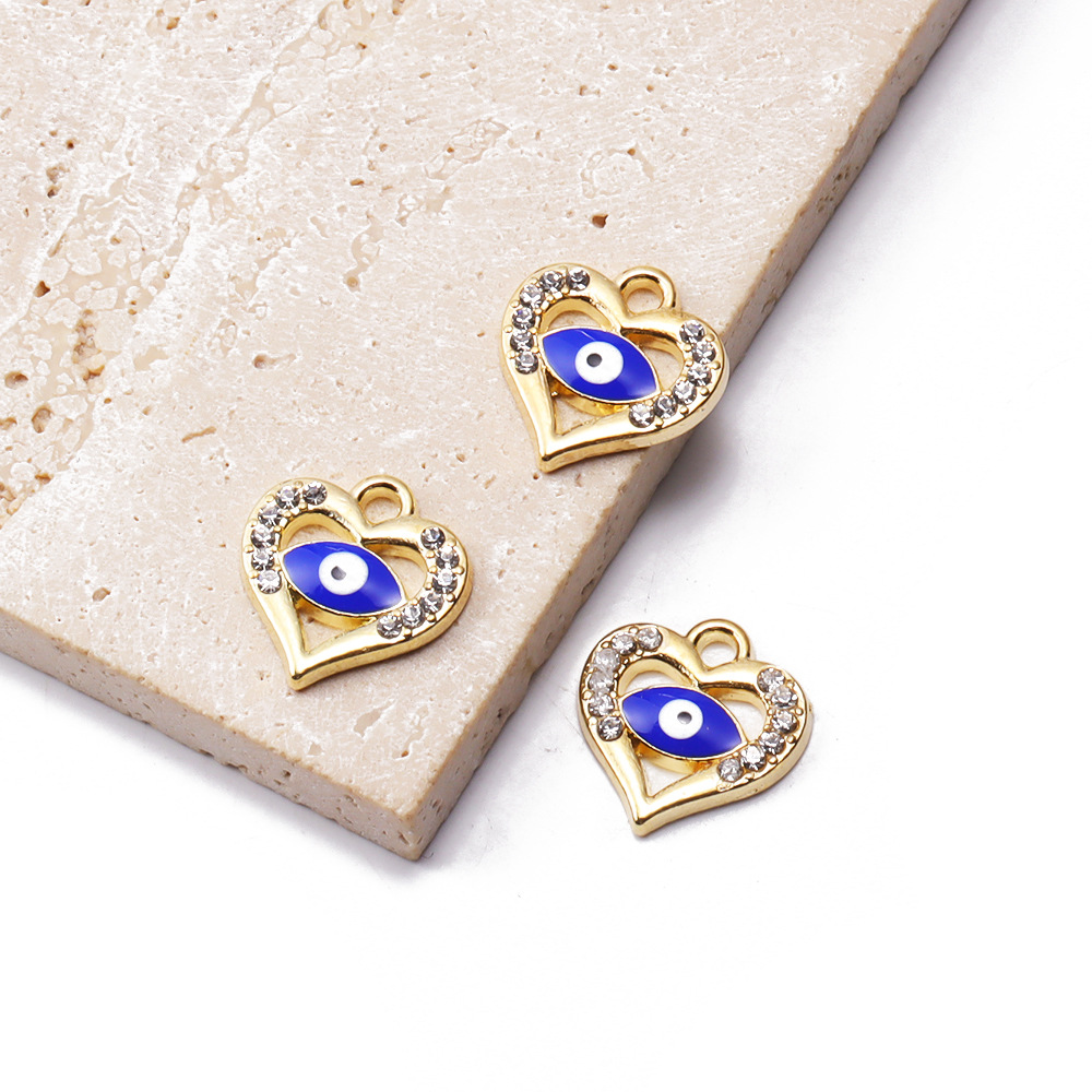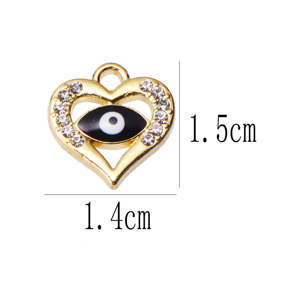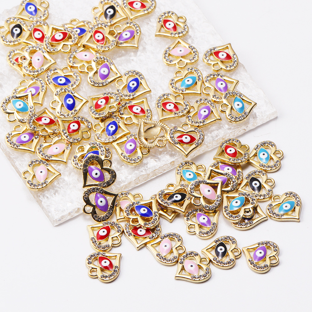 Cink ötvözet strasszos Medálok, Szív, arany színű aranyozott, DIY & gonosz szem minta & zománc, több színt a választás, nikkel, ólom és kadmium mentes, 100PC/Bag, Által értékesített Bag
