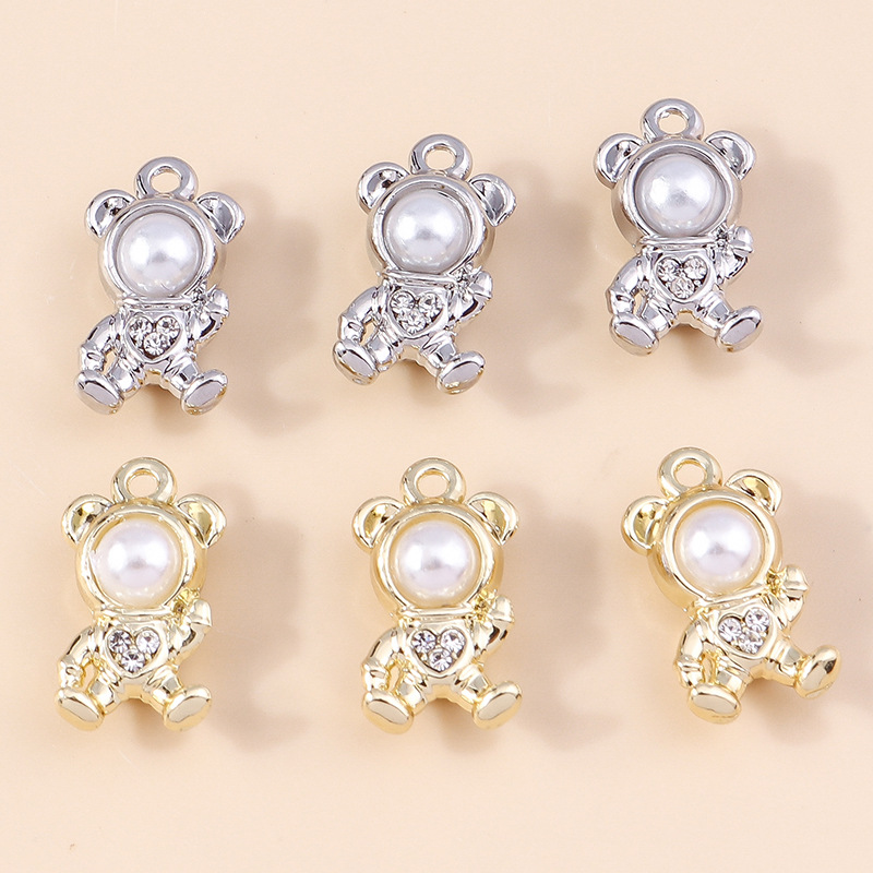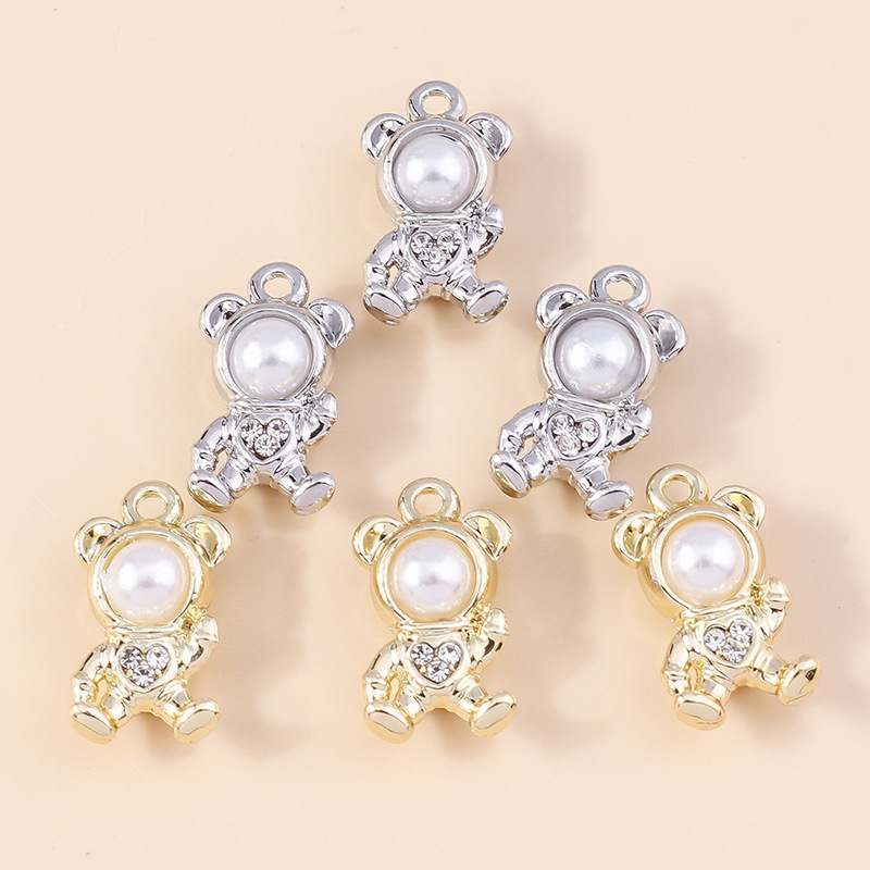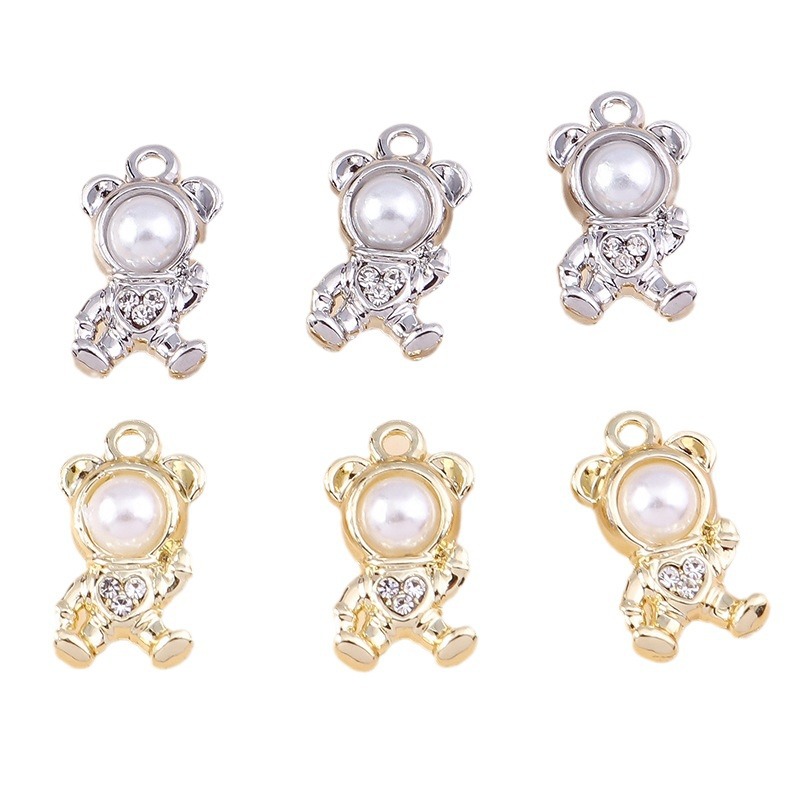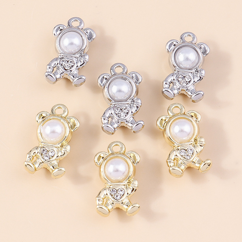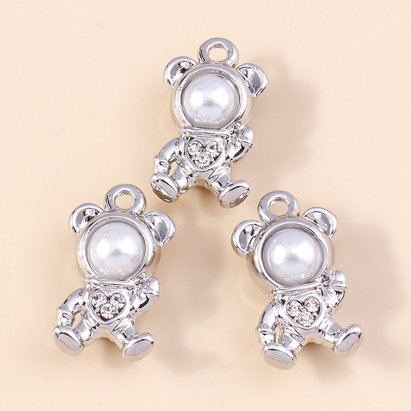 Cink ötvözet strasszos Medálok, -val Műanyag Pearl, Űrhajós, galvanizált, DIY, több színt a választás, 5PC-k/Bag, Által értékesített Bag