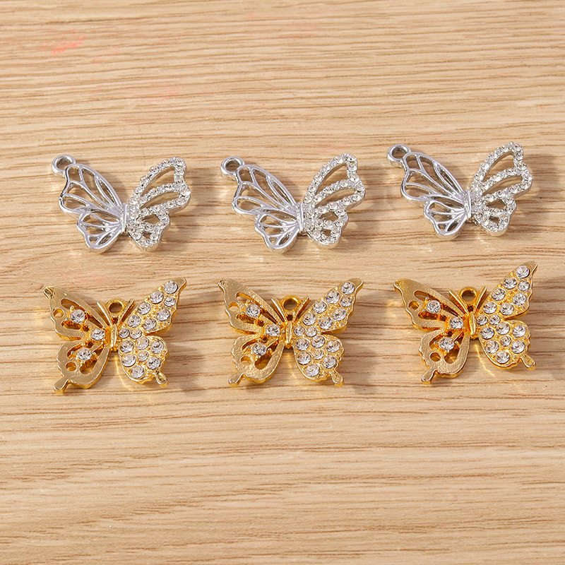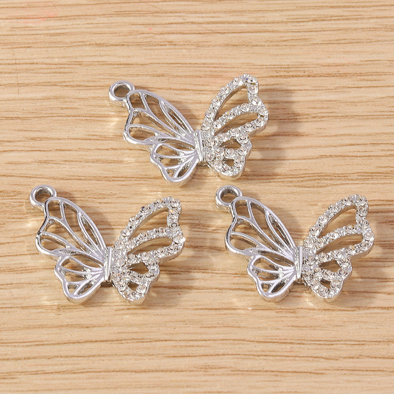 Cink ötvözet strasszos Medálok, Pillangó, galvanizált, DIY & üreges, több színt a választás, 23x19mm, 10PC-k/Bag, Által értékesített Bag