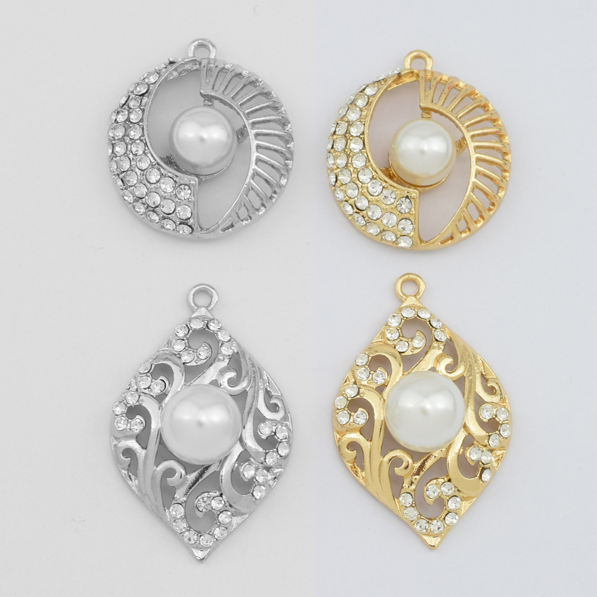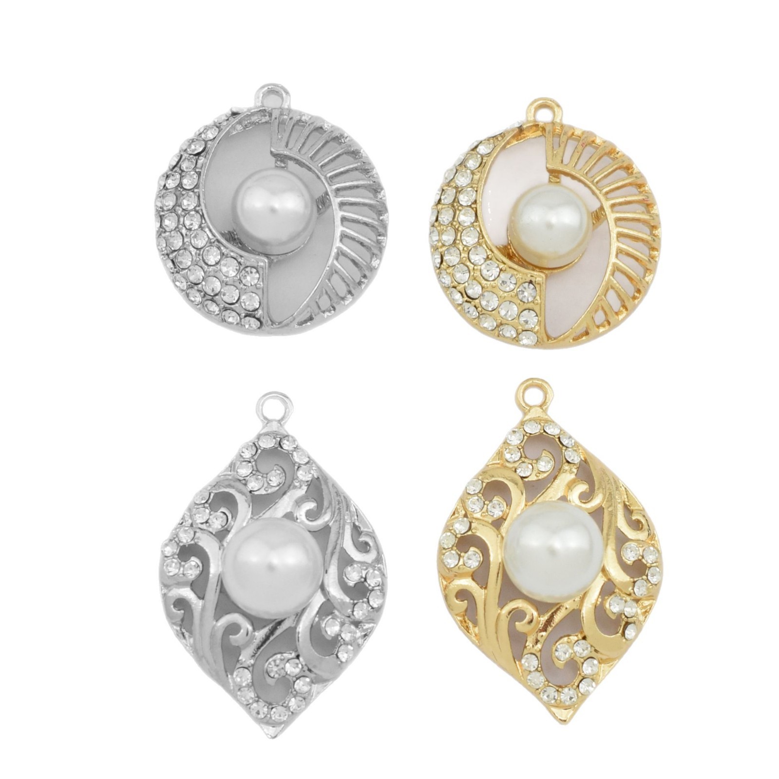 Cink ötvözet strasszos Medálok, -val Műanyag Pearl, DIY & mikro egyengetni cirkónia, több színt a választás, Által értékesített PC