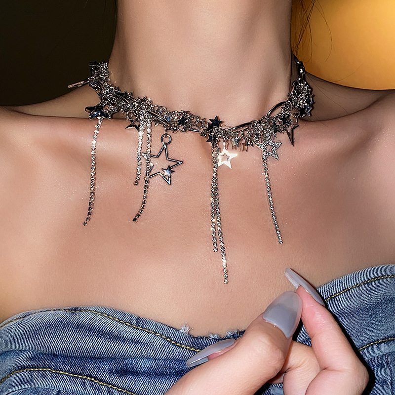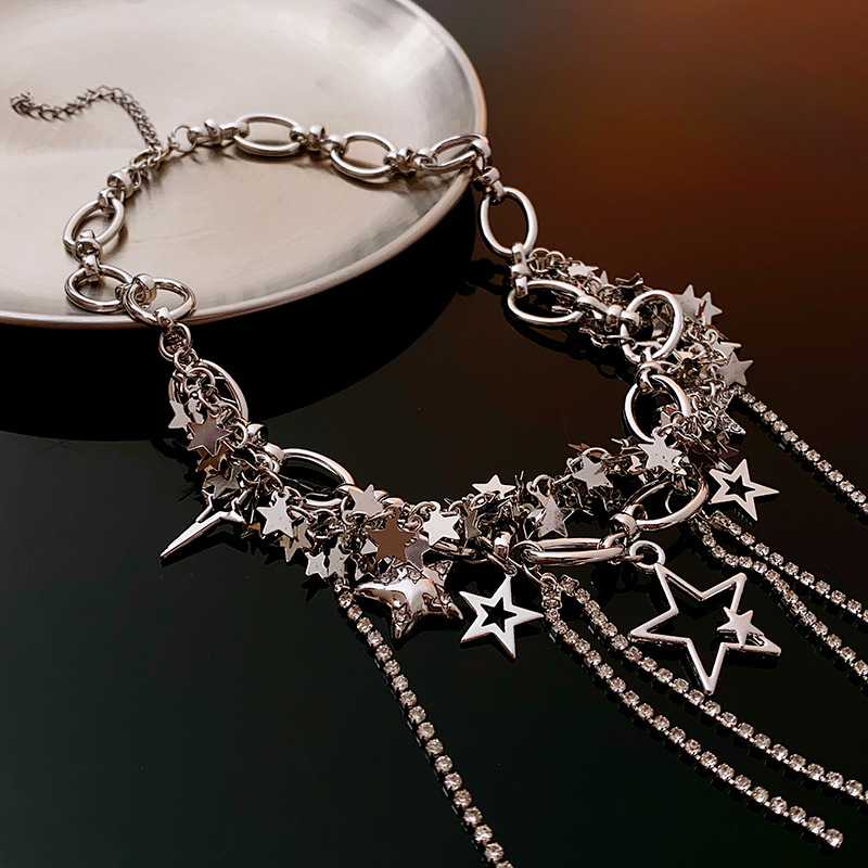 Cink ötvözet Nyaklánc, Csillag, ezüst színű bevonattal, a nő & üreges, Hossz Kb 17.3 inch, Által értékesített PC