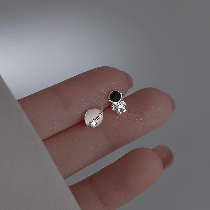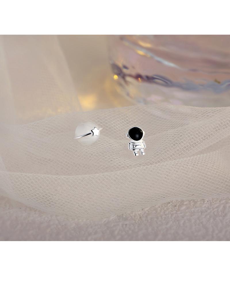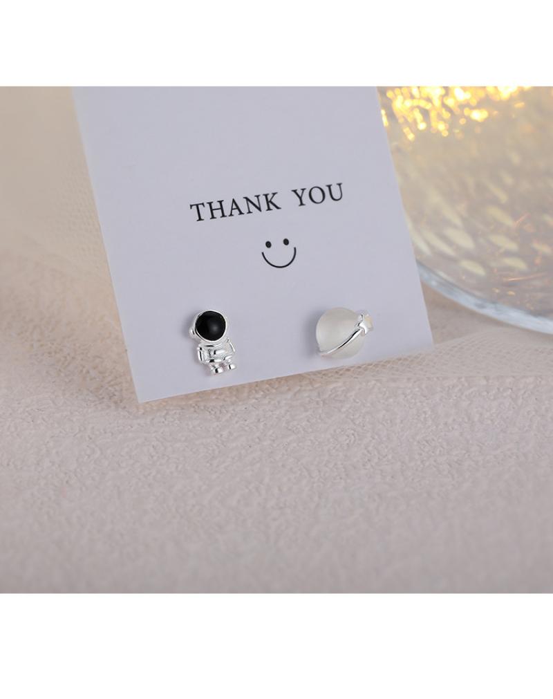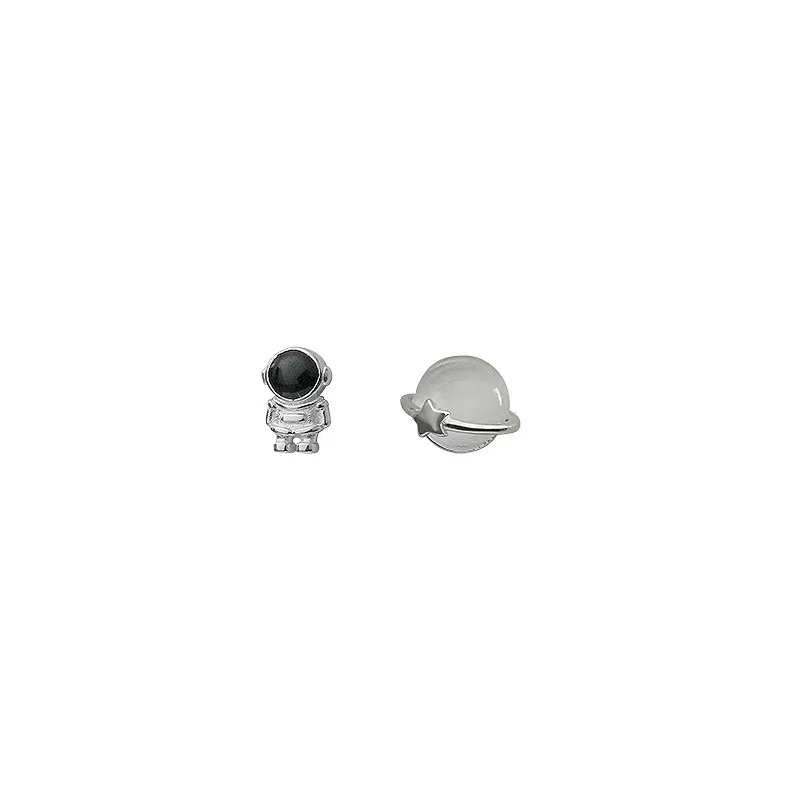 aszimmetrikus fülbevaló, Sárgaréz, -val Cats Eye, Űrhajós, galvanizált, divat ékszerek, kevert színek, nikkel, ólom és kadmium mentes, 6x8mm, Által értékesített pár