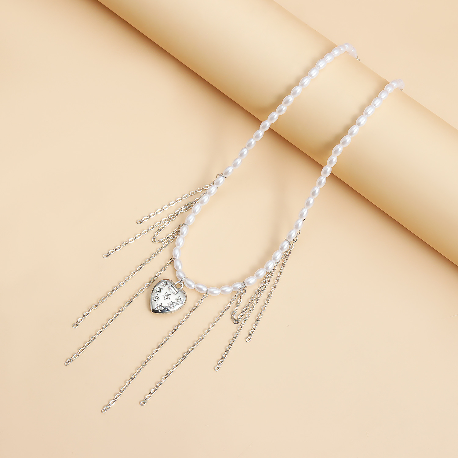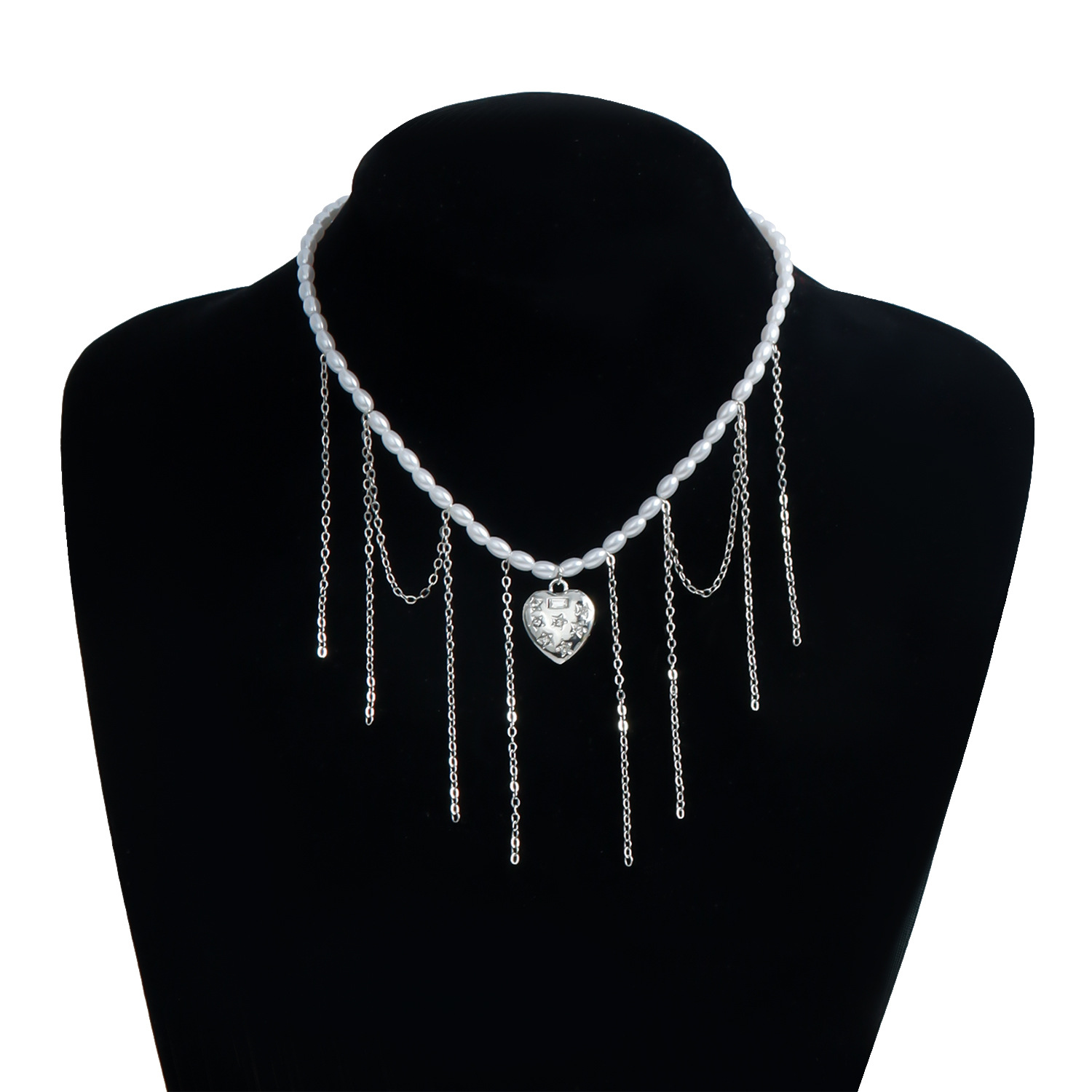 Műanyag Pearl Béren kívüli nyaklánc, -val Cink ötvözet, galvanizált, divat ékszerek & a nő, az eredeti szín, Által értékesített PC
