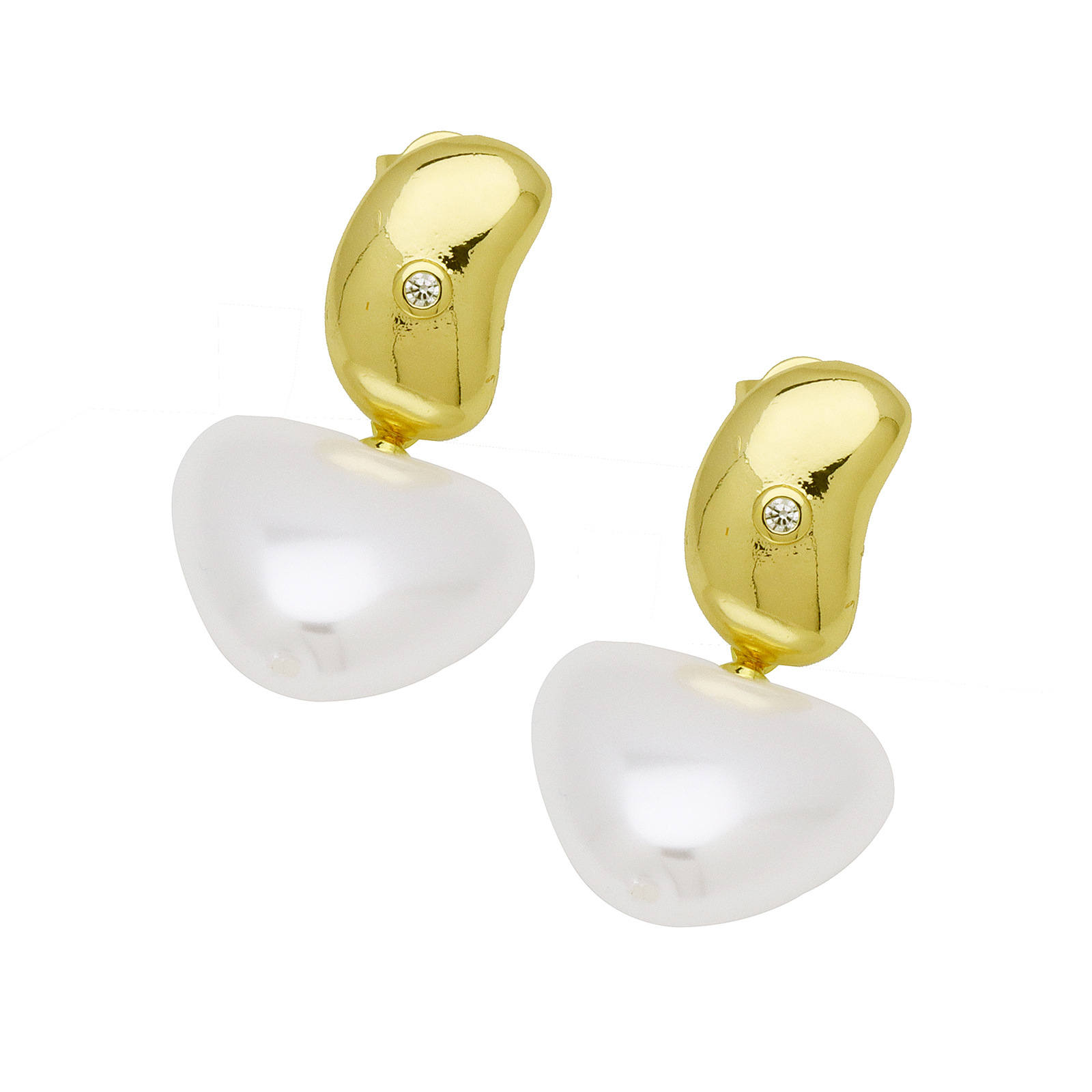 sárgaréz  Csepp Fülbevaló, -val Műanyag Pearl, valódi aranyozott, divat ékszerek & a nő, Által értékesített pár