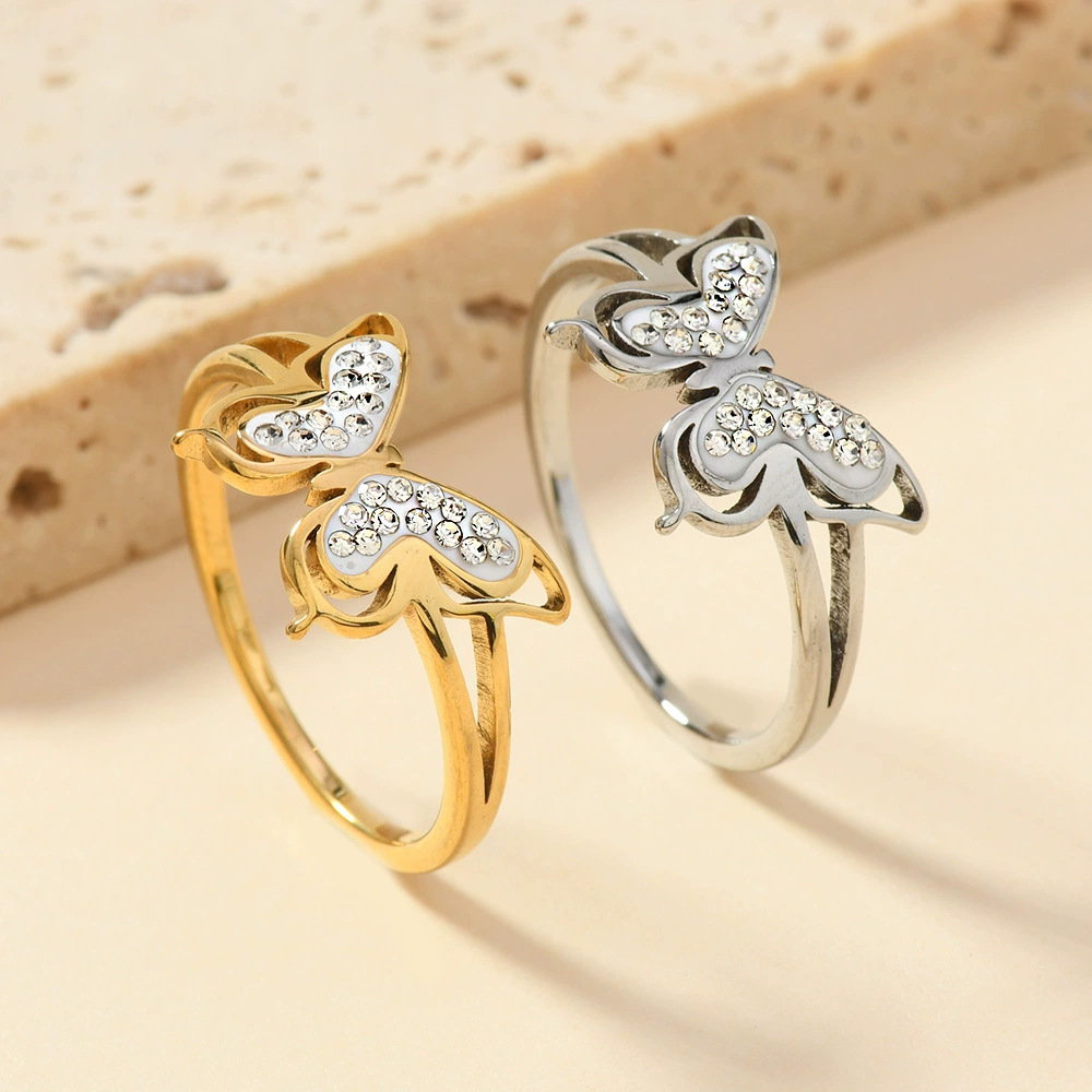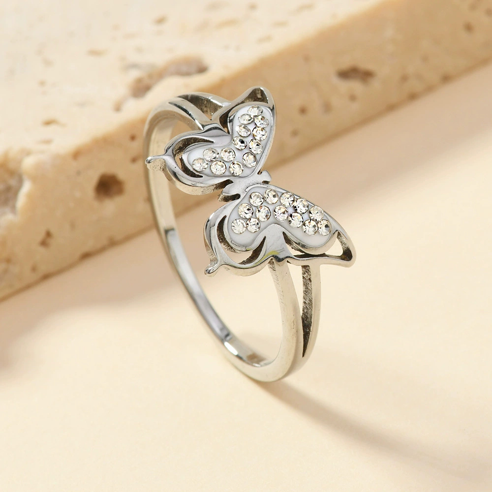 304 acciaio inox anello, Farfalla, placcato, formato differente per scelta & per la donna & con strass, nessuno, Misura:6-10, Venduto da PC