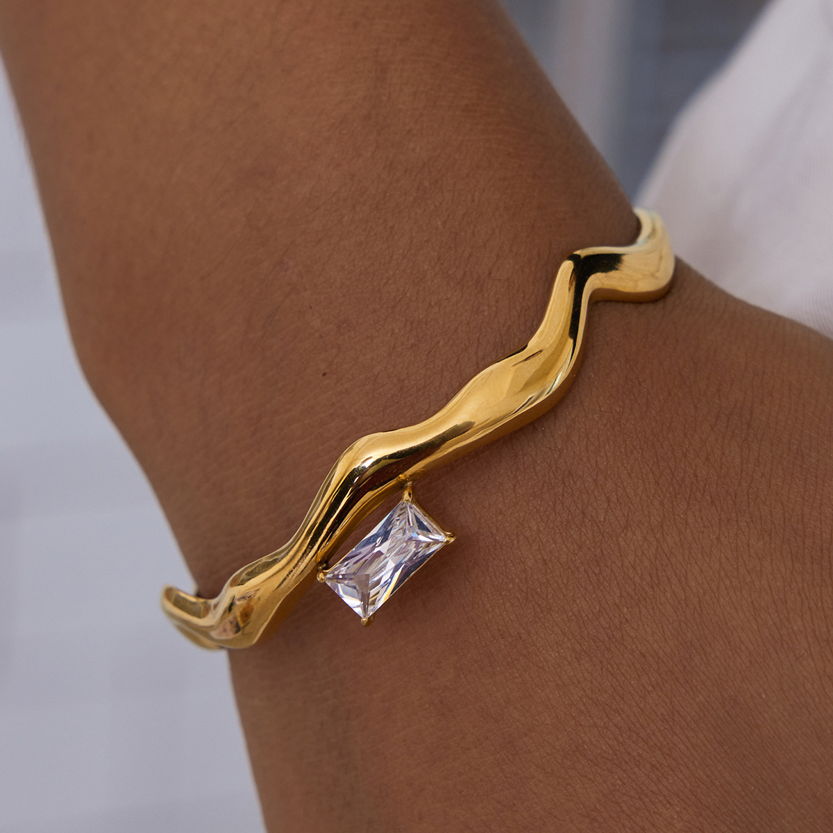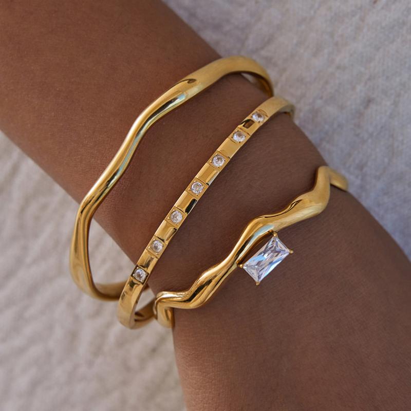 304 acciaio inox bracciale, with cubico zircone, placcato, gioielli di moda & stili diversi per la scelta & per la donna, dorato, Venduto da PC