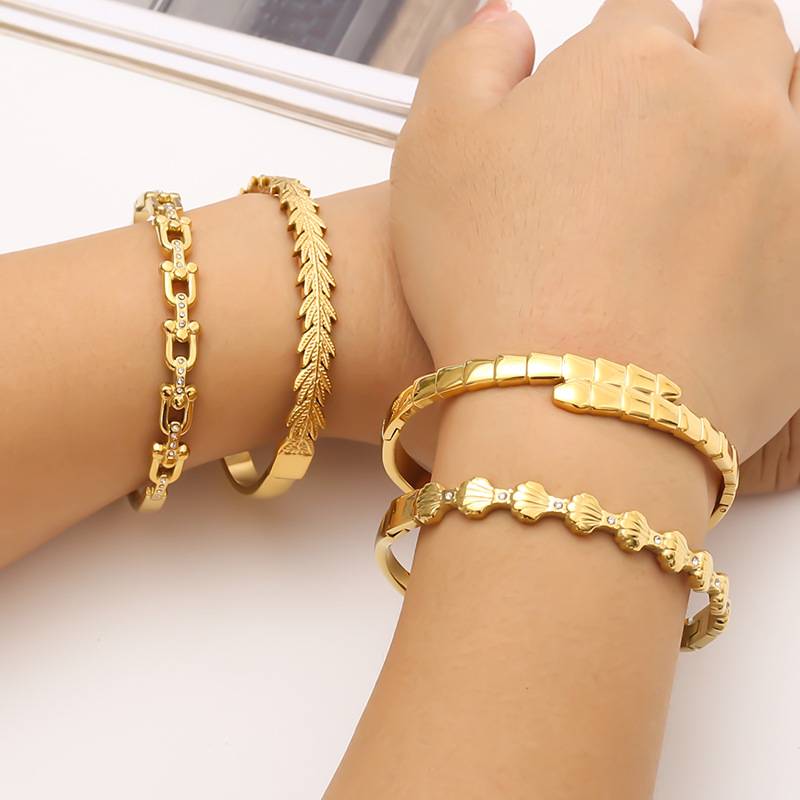 1:Shell bracelet2:Leaf bracelet3:Bamboo bracelet4:Horseshoe buckle bracelet