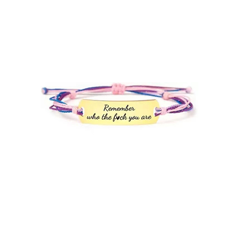 1:Fog blue three-color rope bracelet lettering3:Pink blue purple rope bracelet gold curved card lettering4:Remember engraved bracelet set