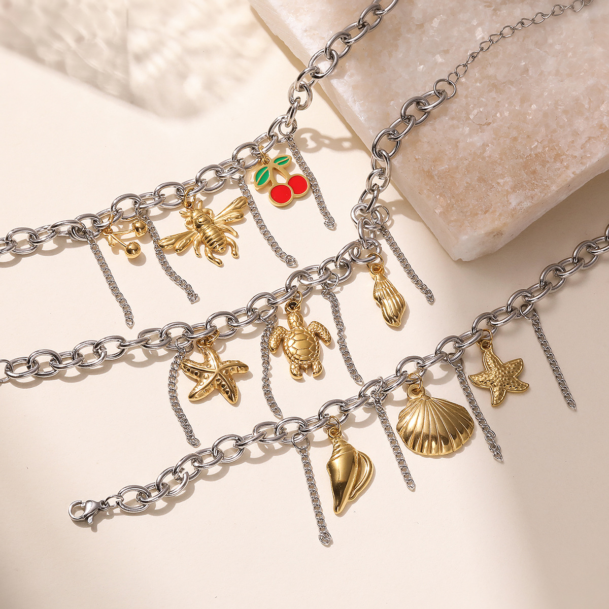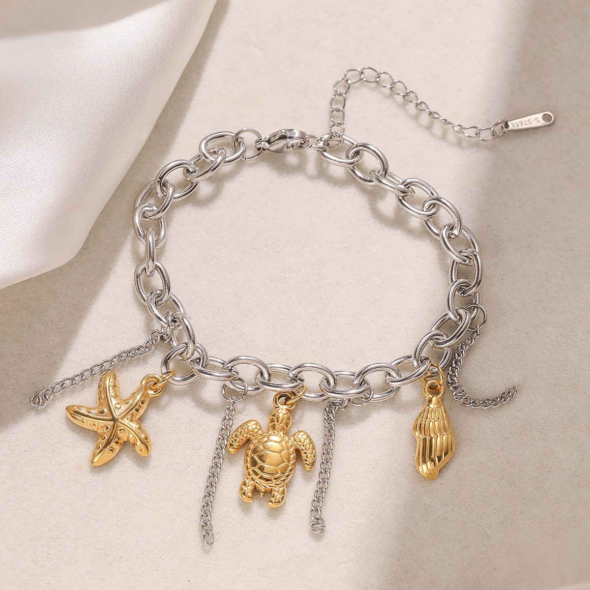 Bracciale gioielli in acciaio inossidabile, 304 acciaio inox, with conchiglia, placcato, per la donna & a due lati & cavo, nessuno, Lunghezza Appross. 16 cm, Venduto da PC