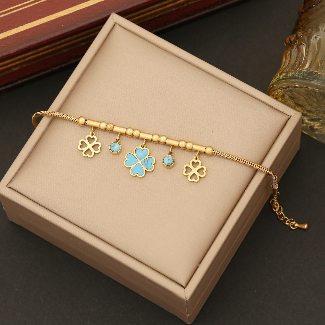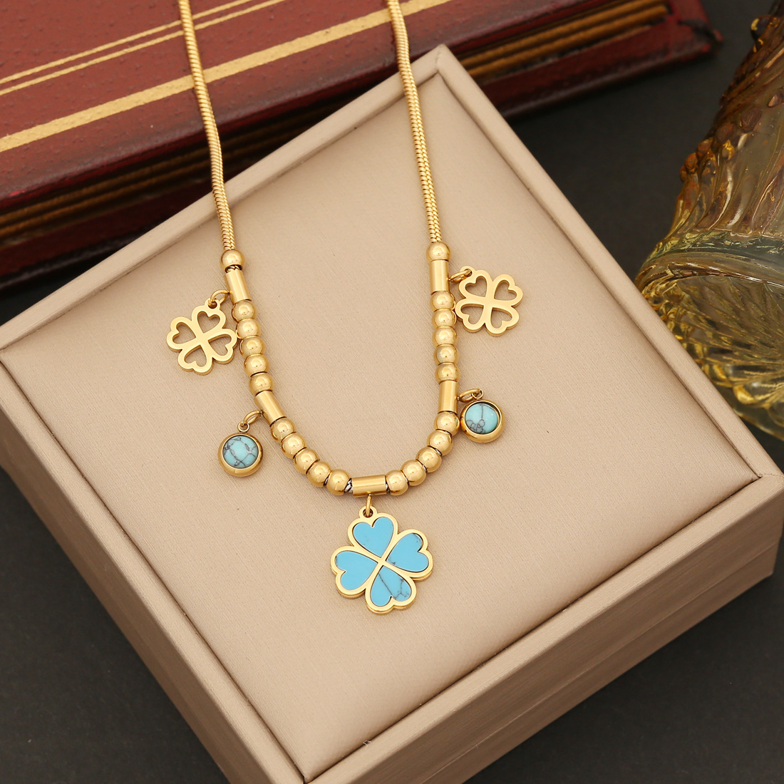 304 acciaio inox set di gioielli fashion, with turchese sintetico, trifoglio quattro petali, placcato color oro, stili diversi per la scelta & per la donna, Venduto da PC