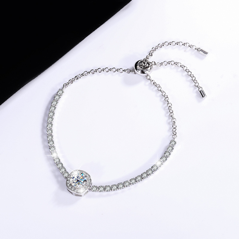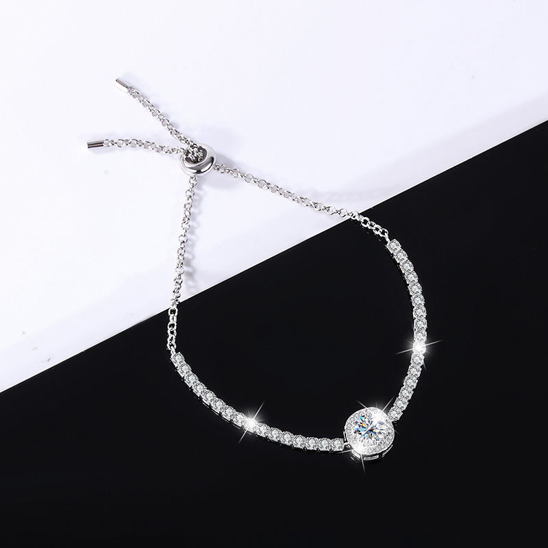 925 argento sterlina braccialetto, with Moissanite, Quadrato, placcato platino, regolabile & per la donna, nessuno, Lunghezza Appross. 6-9 pollice, Venduto da PC