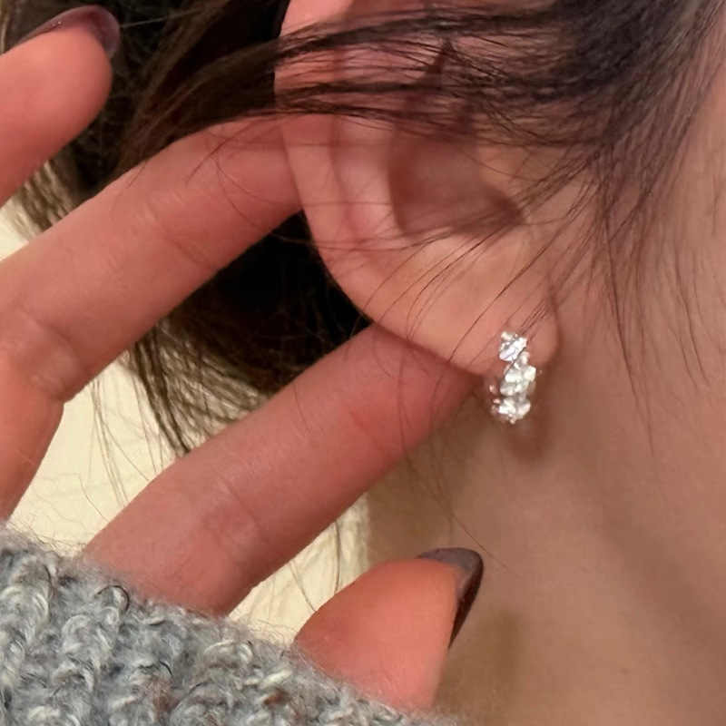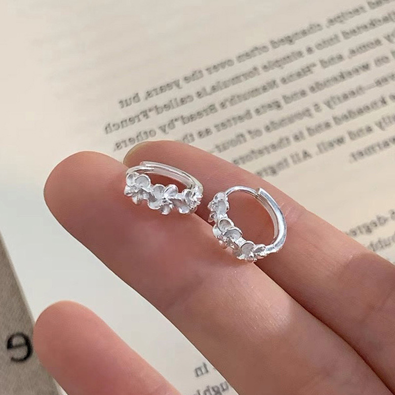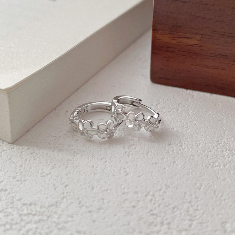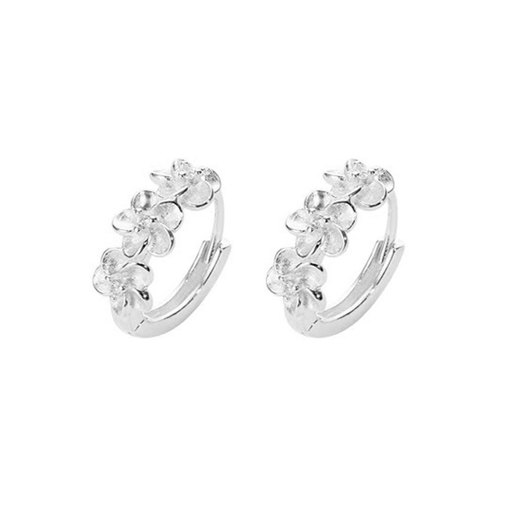 925 sterline d'argento Huggie Orecchino ad anello, Fiore, placcato platino, Micro spianare cubic zirconia & per la donna, 13.60x5mm, Venduto da coppia
