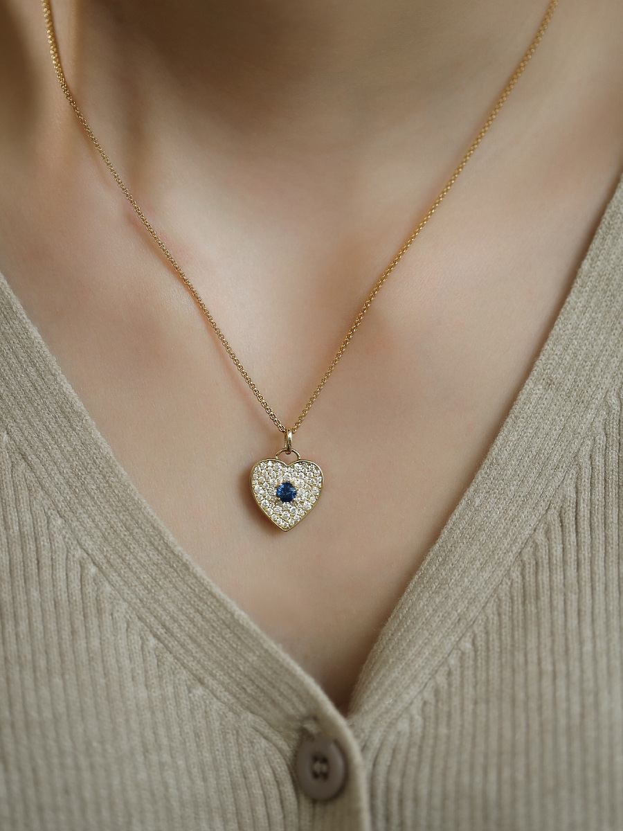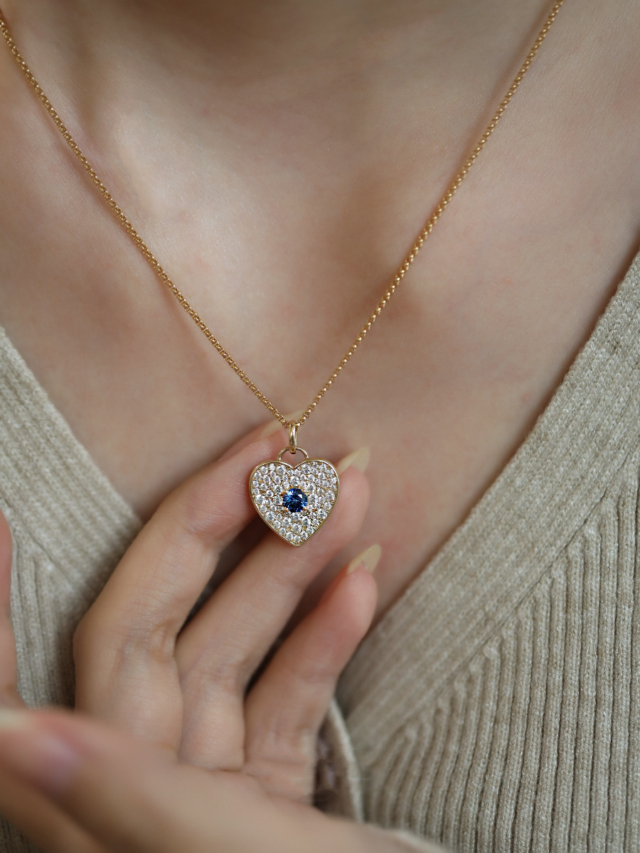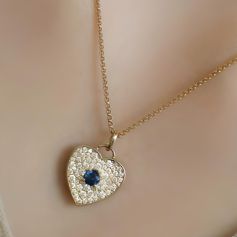 925 sterline d'argento collana, Cuore, placcato color oro, Micro spianare cubic zirconia & per la donna, Lunghezza Appross. 17.7 pollice, Venduto da PC