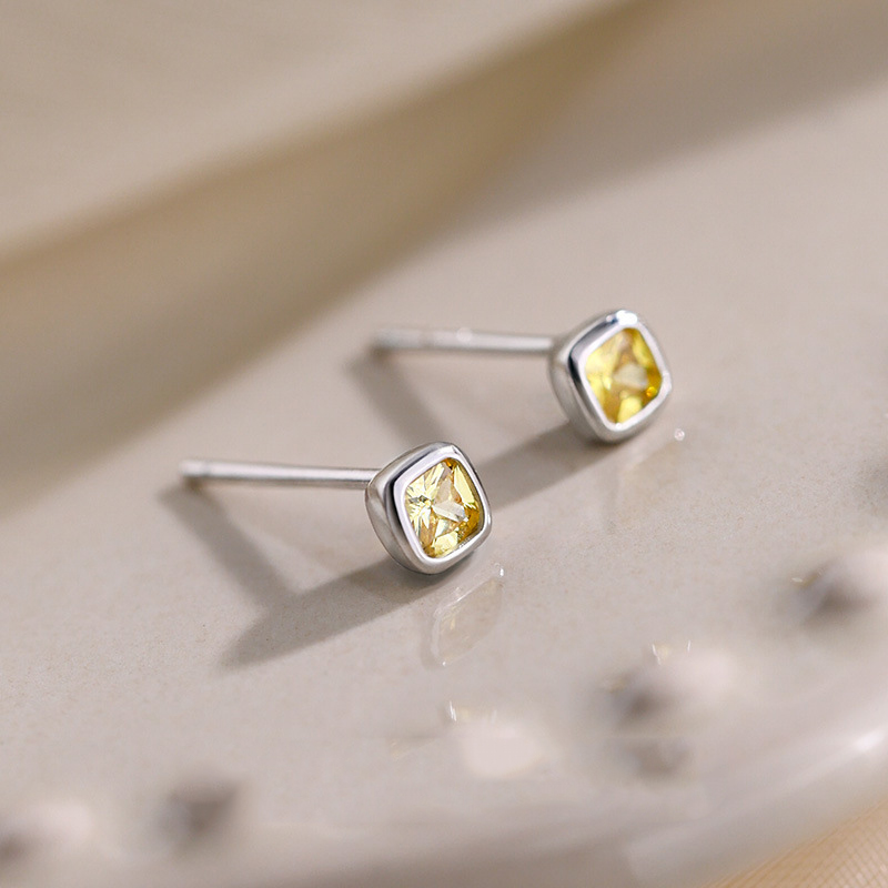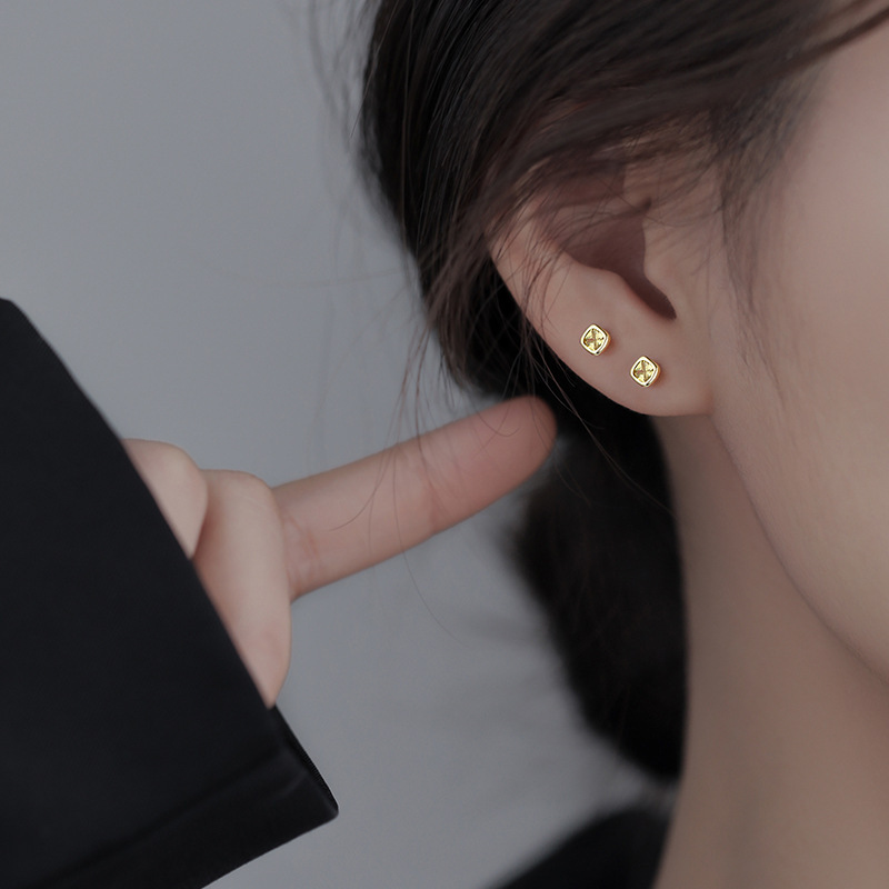 925 sterline d'argento orecchini a borchia, Quadrato, per la donna & con strass, nessuno, 4x4mm, Venduto da coppia