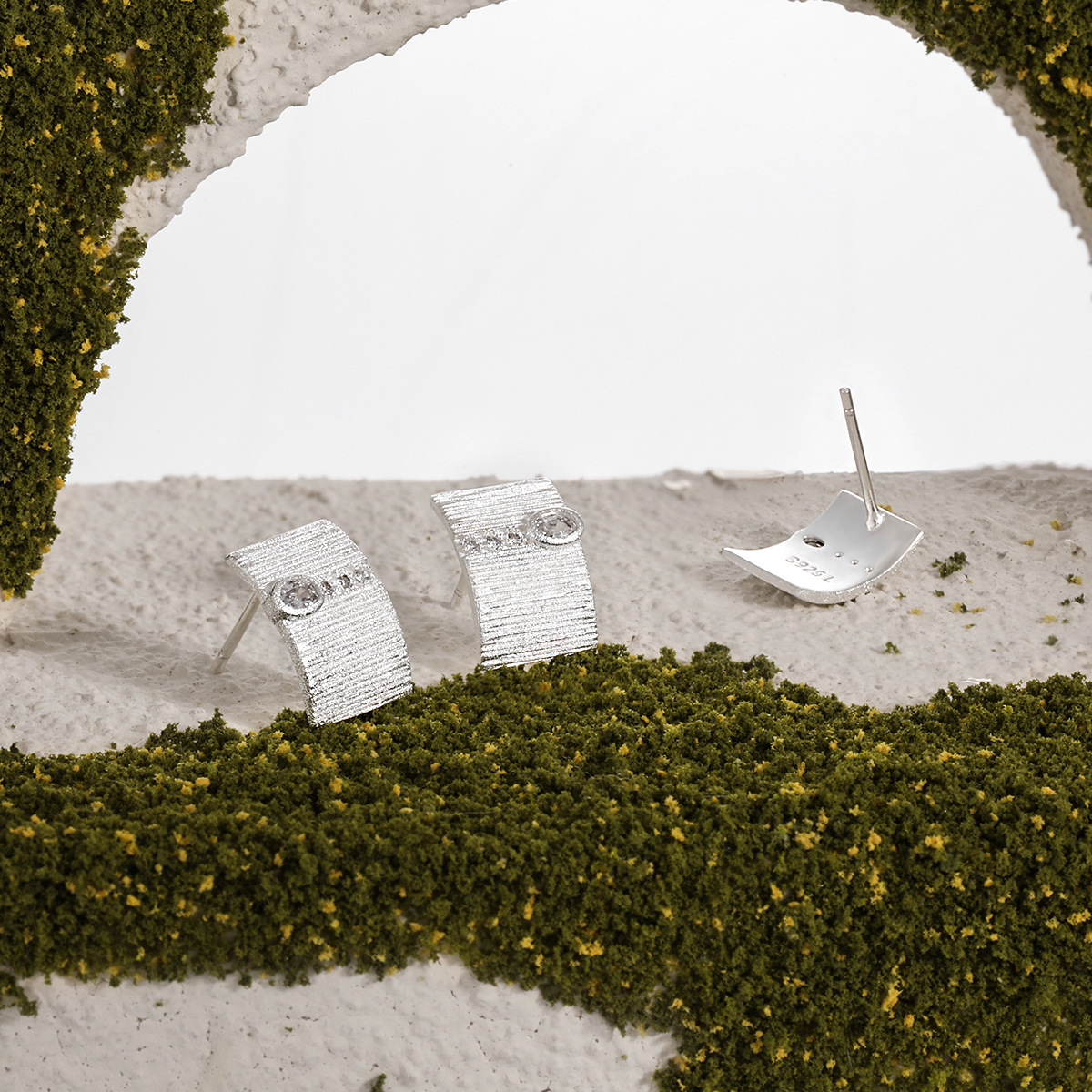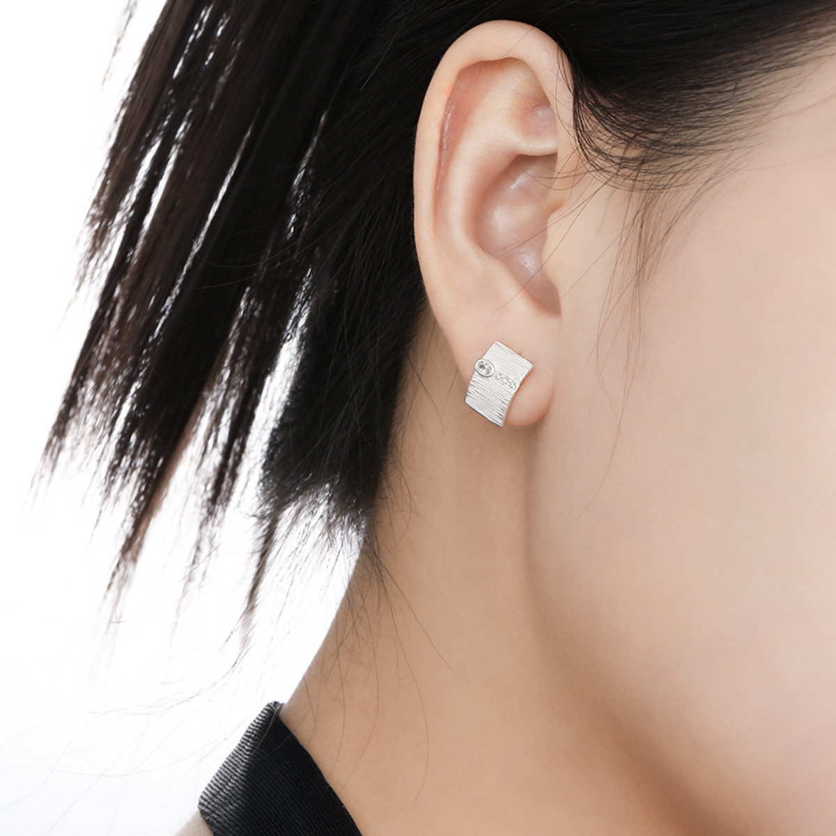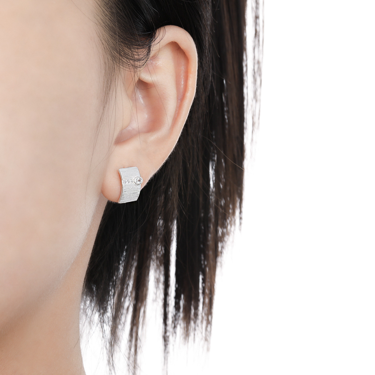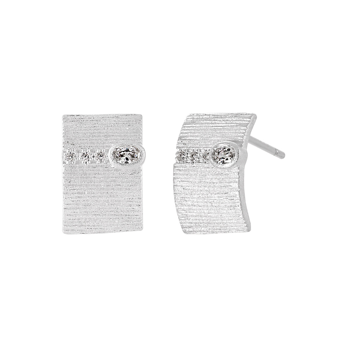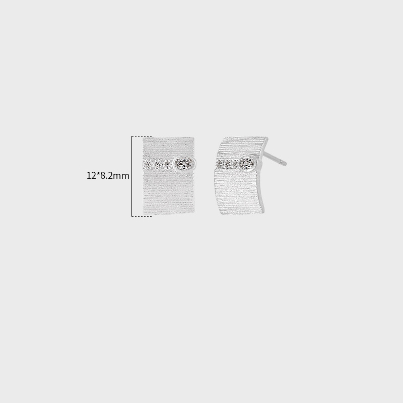 925 sterline d'argento orecchini a borchia, Motivo geometrico, spazzolato & Micro spianare cubic zirconia & per la donna, argento, 8.20x12mm, Venduto da coppia