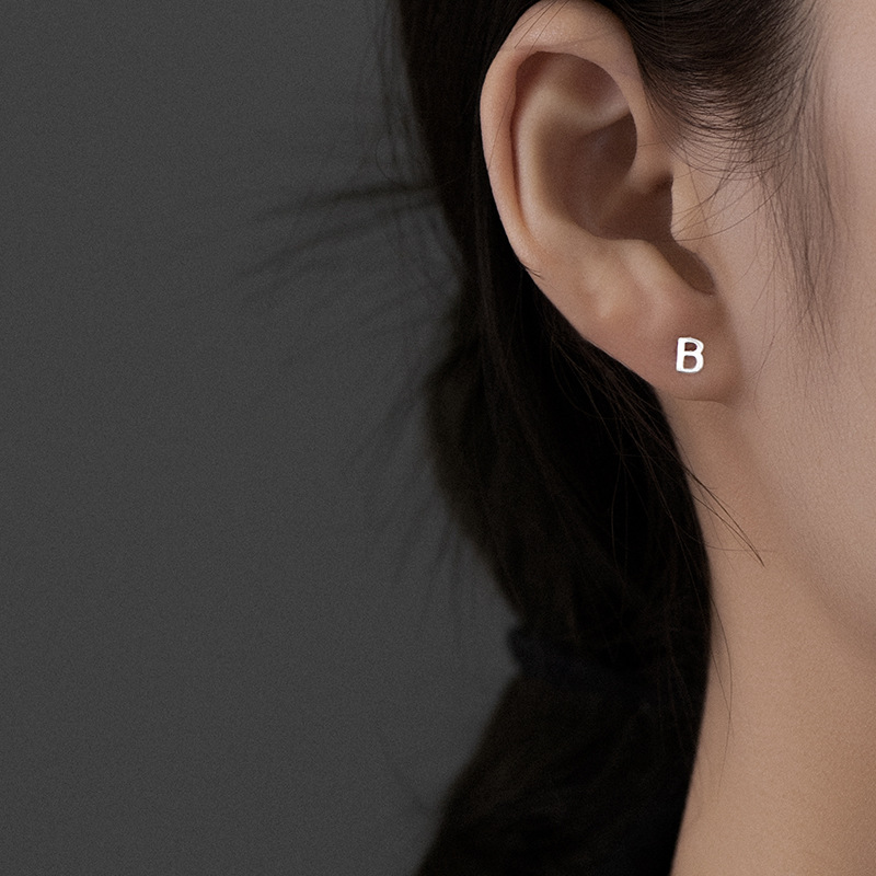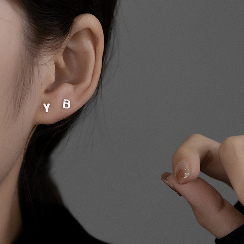 925 sterline d'argento orecchini a borchia, Lettera alfabeto, placcato platino, stili diversi per la scelta & per la donna, 5mm, Venduto da PC