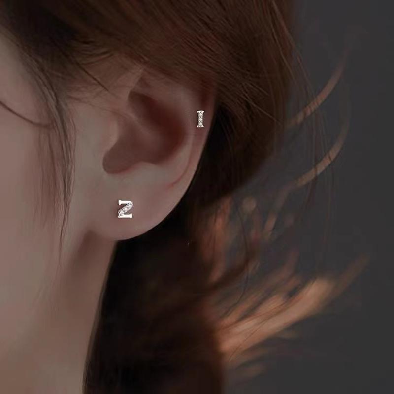925 sterline d'argento orecchini a borchia, Lettera alfabeto, stili diversi per la scelta & Micro spianare cubic zirconia & per la donna, 4x5mm, Venduto da coppia