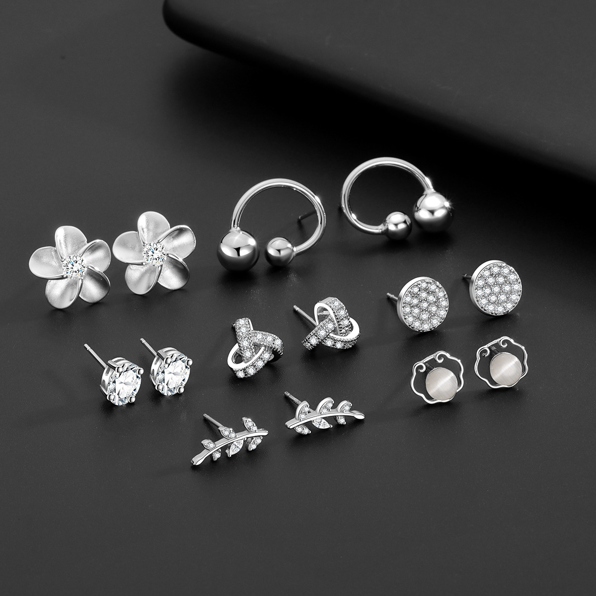 925 sterline d'argento orecchini a borchia, stili diversi per la scelta & per la donna & con strass, Venduto da coppia