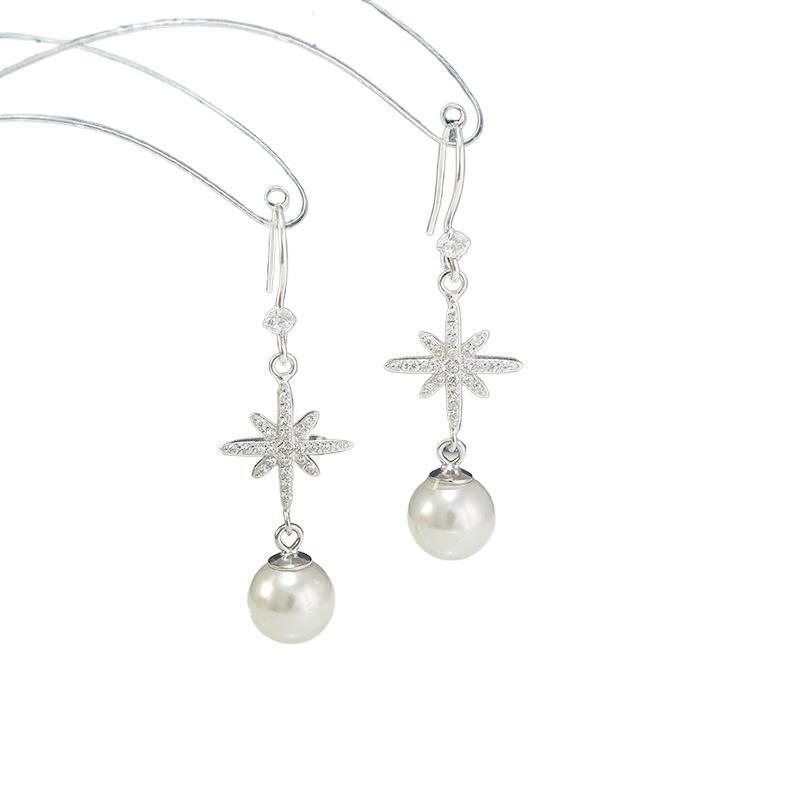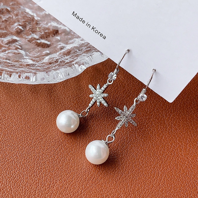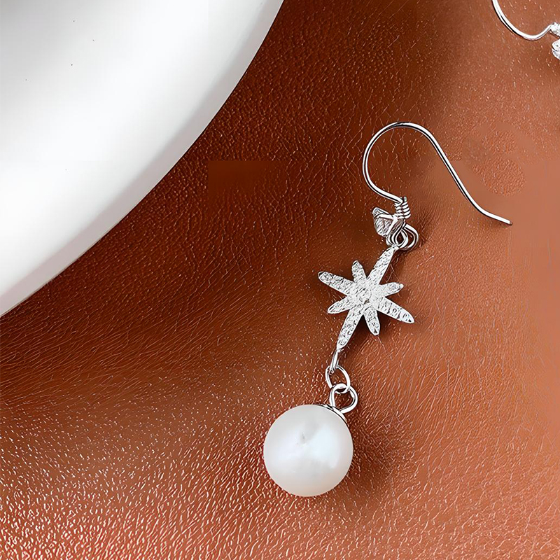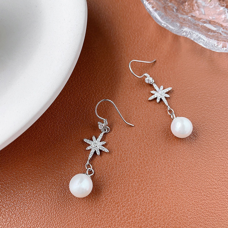 925 sterline d'argento orecchini a goccia, with perla in plastica, Otto centro stella, gioielli di moda & per la donna & con strass, 50mm, Venduto da coppia
