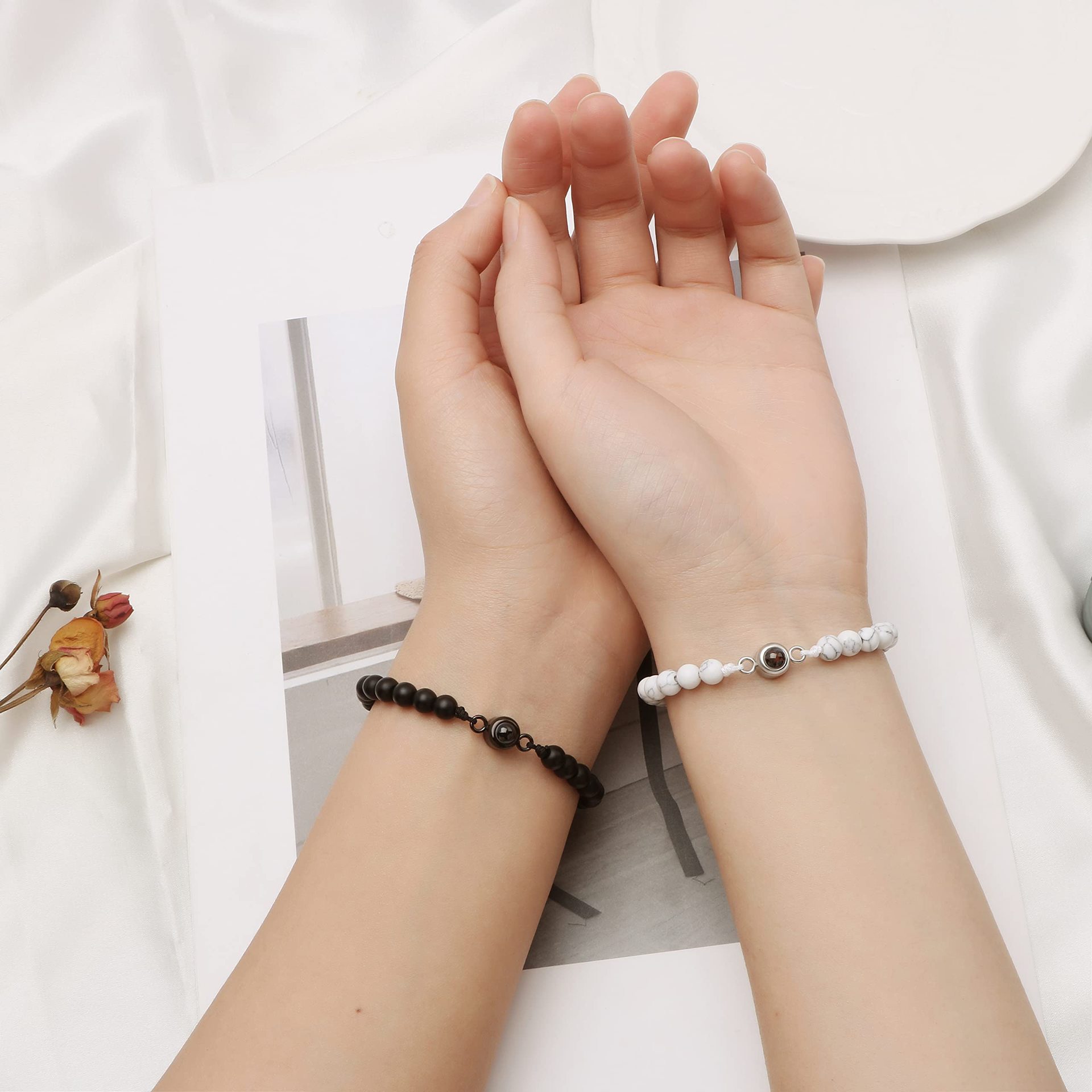 Pietra Abrazina Braccialetto di proiezione in miniatura, with magnesite & diaspro zebra & 304 acciaio inox, fatto a mano, stili diversi per la scelta & per coppia, Lunghezza Appross. 6-10 pollice, Venduto da set