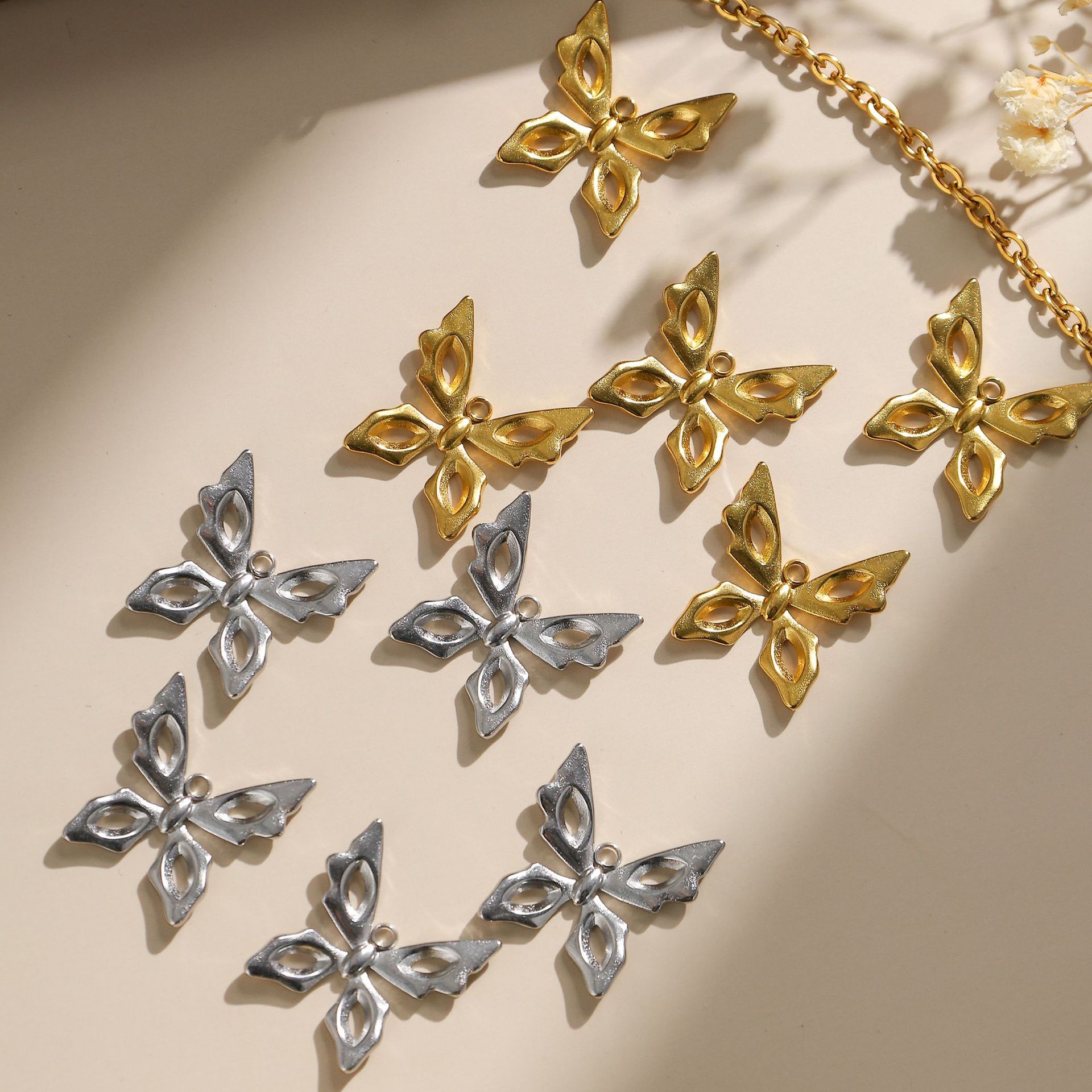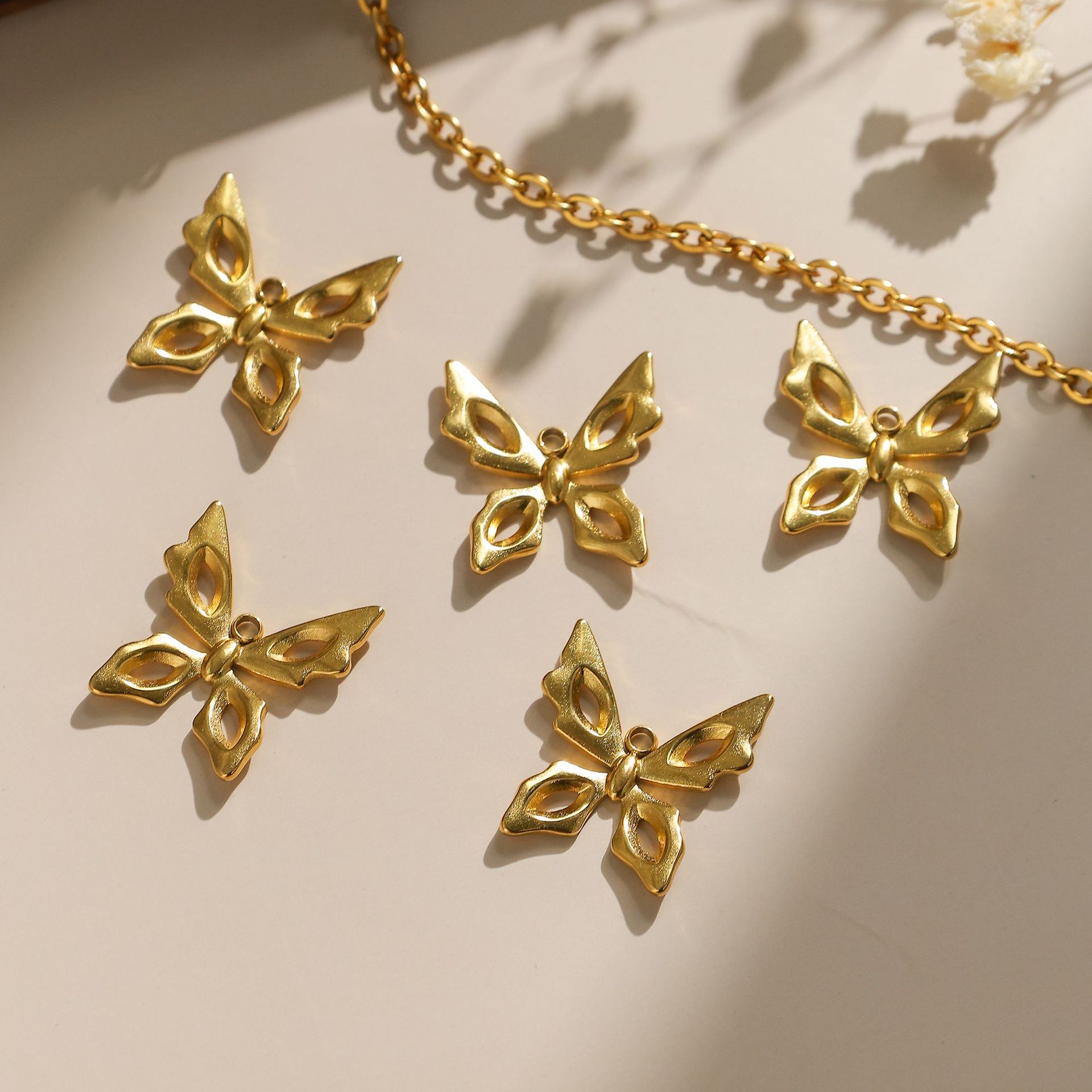 304 acciaio inox pendente, Farfalla, placcato color oro, DIY & smalto, nessuno, assenza di nichel,piombo&cadmio, 10PC/borsa, Venduto da borsa
