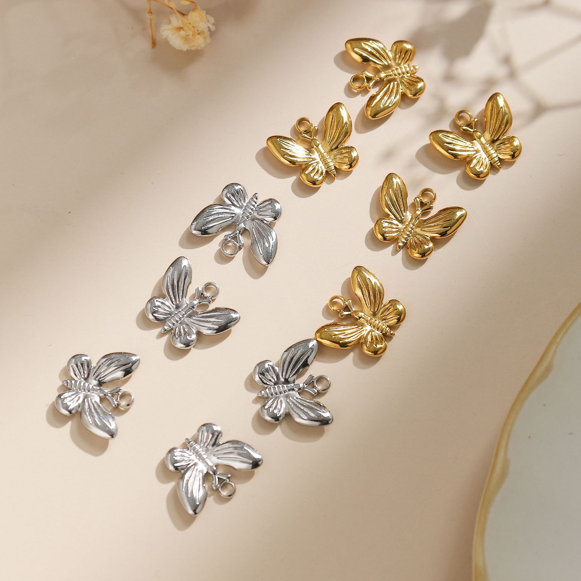 304 acciaio inox pendente, Farfalla, placcato color oro, DIY & smalto, nessuno, assenza di nichel,piombo&cadmio, 10PC/borsa, Venduto da borsa