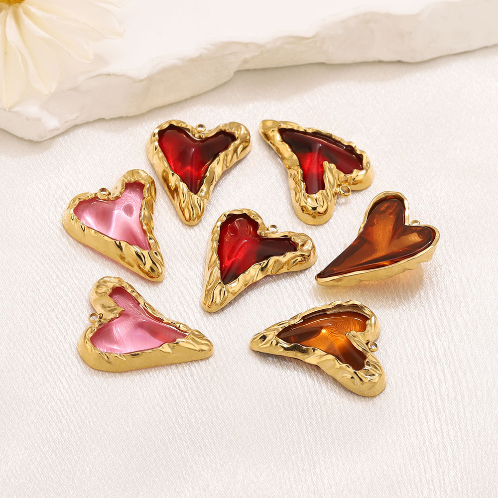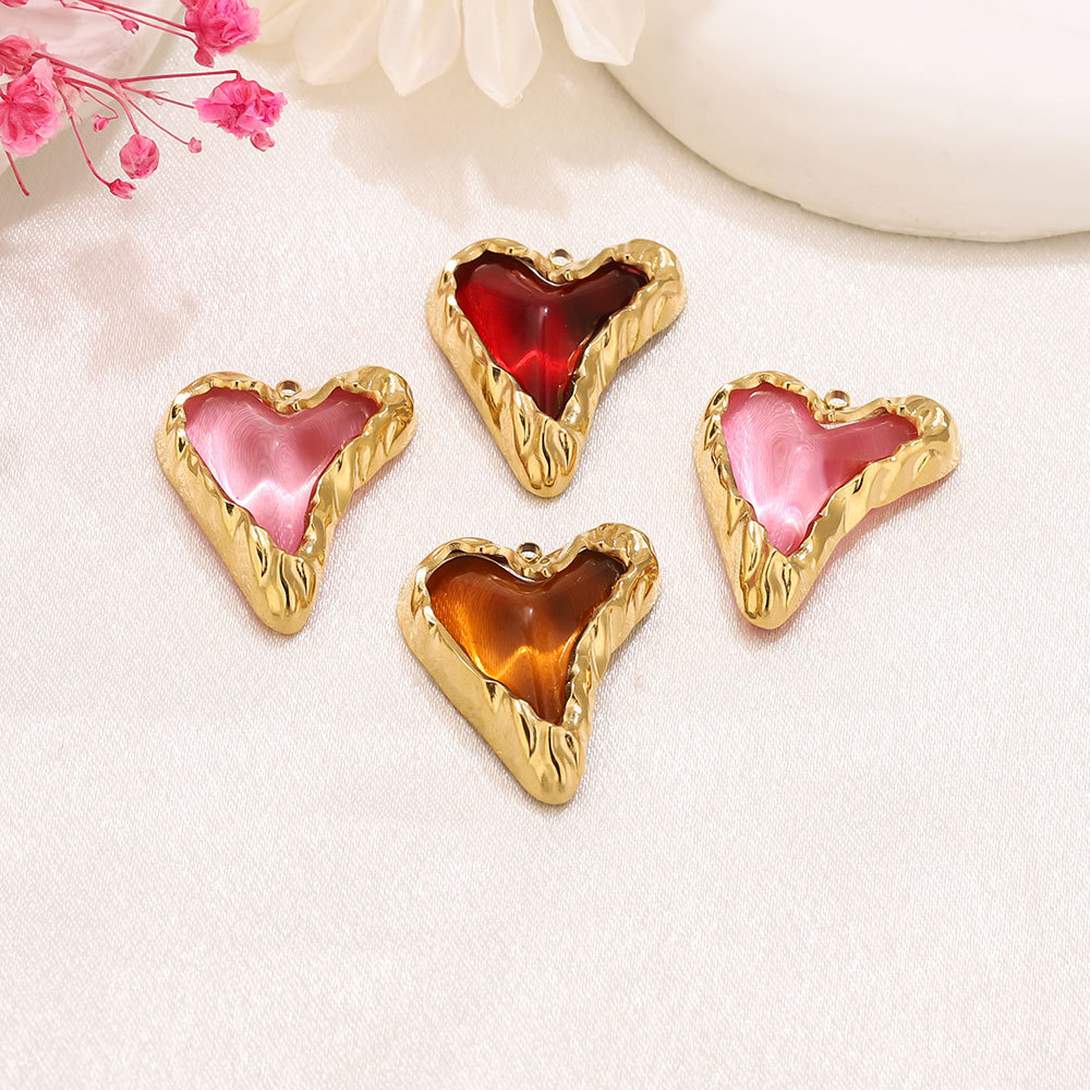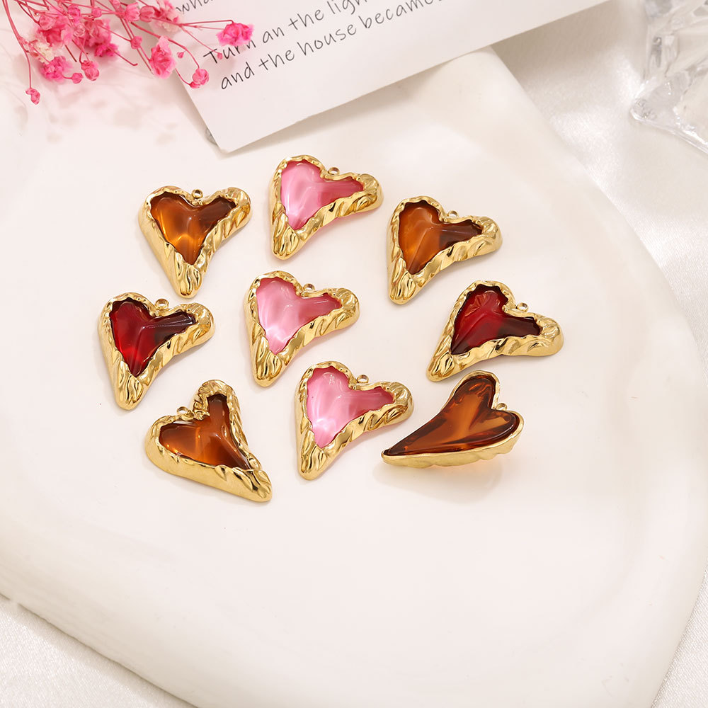 Acciaio inossidabile Cuore Ciondoli, 304 acciaio inox, with resina, placcato color oro, DIY, nessuno, 22.80x27.60mm, Foro:Appross. 1.9mm, Venduto da PC