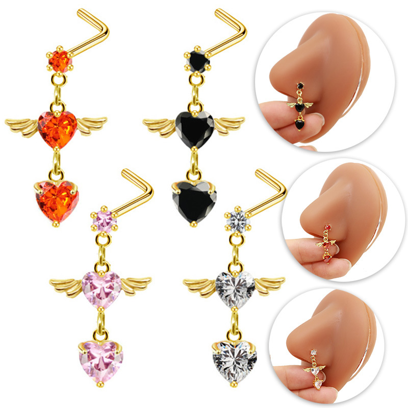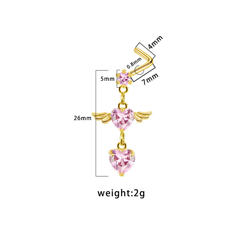 304 acciaio inox Gioielleria da Piercing del naso, Cuore, placcato color oro, unisex & Micro spianare cubic zirconia, nessuno, 26mm, Venduto da PC