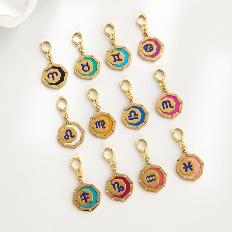 304 acciaio inox pendente, with ottone, 12 Segni zodiacali, placcato color oro, inviato casualmente & DIY & smalto & con strass, 35x17mm, Venduto da PC