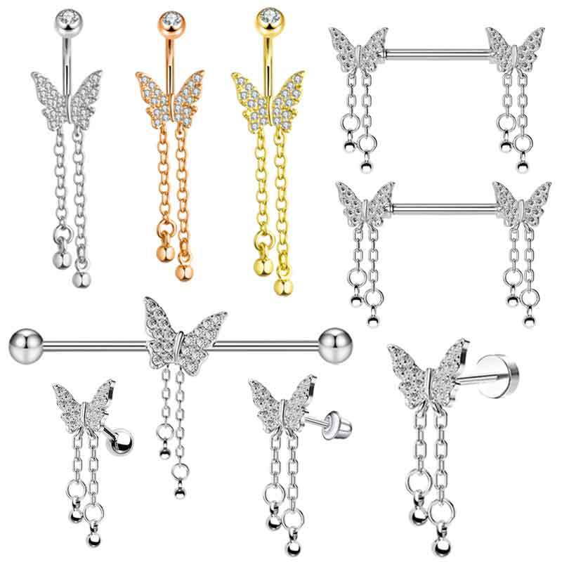 304 acciaio inox Gioielli Dermal Piercing, Farfalla, placcato, unisex & stili diversi per la scelta & con strass, Venduto da PC