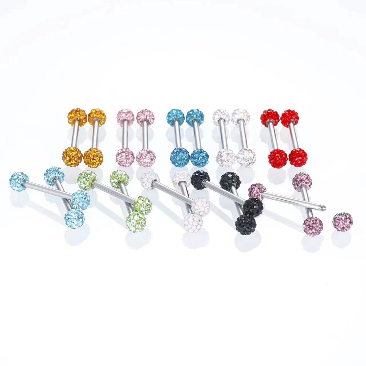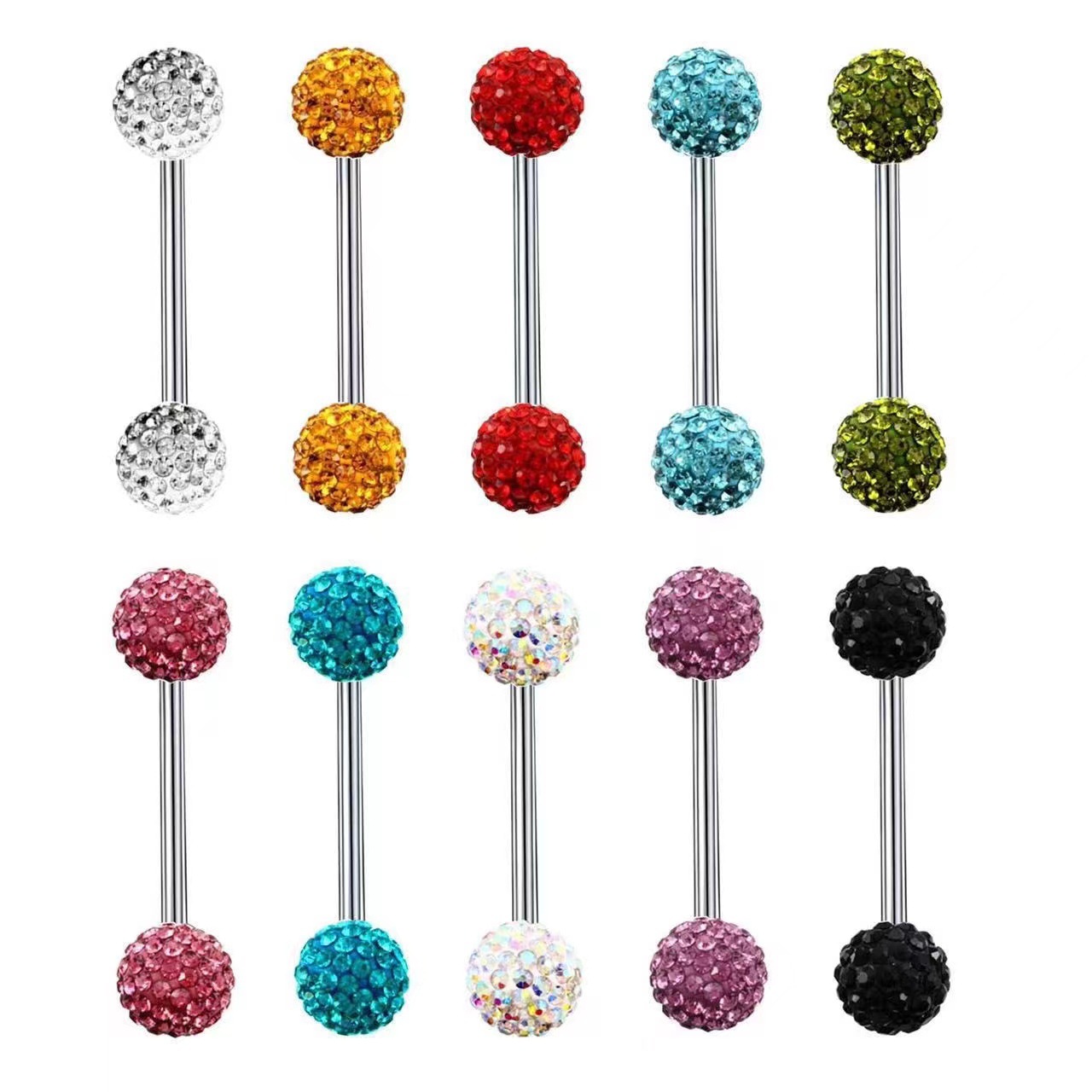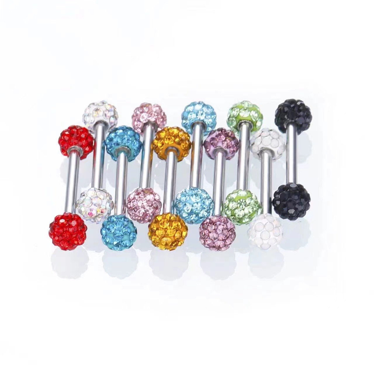 304 acciaio inox anello per lingua, Cerchio, unisex & formato differente per scelta & con strass, Colore casuale, Venduto da PC