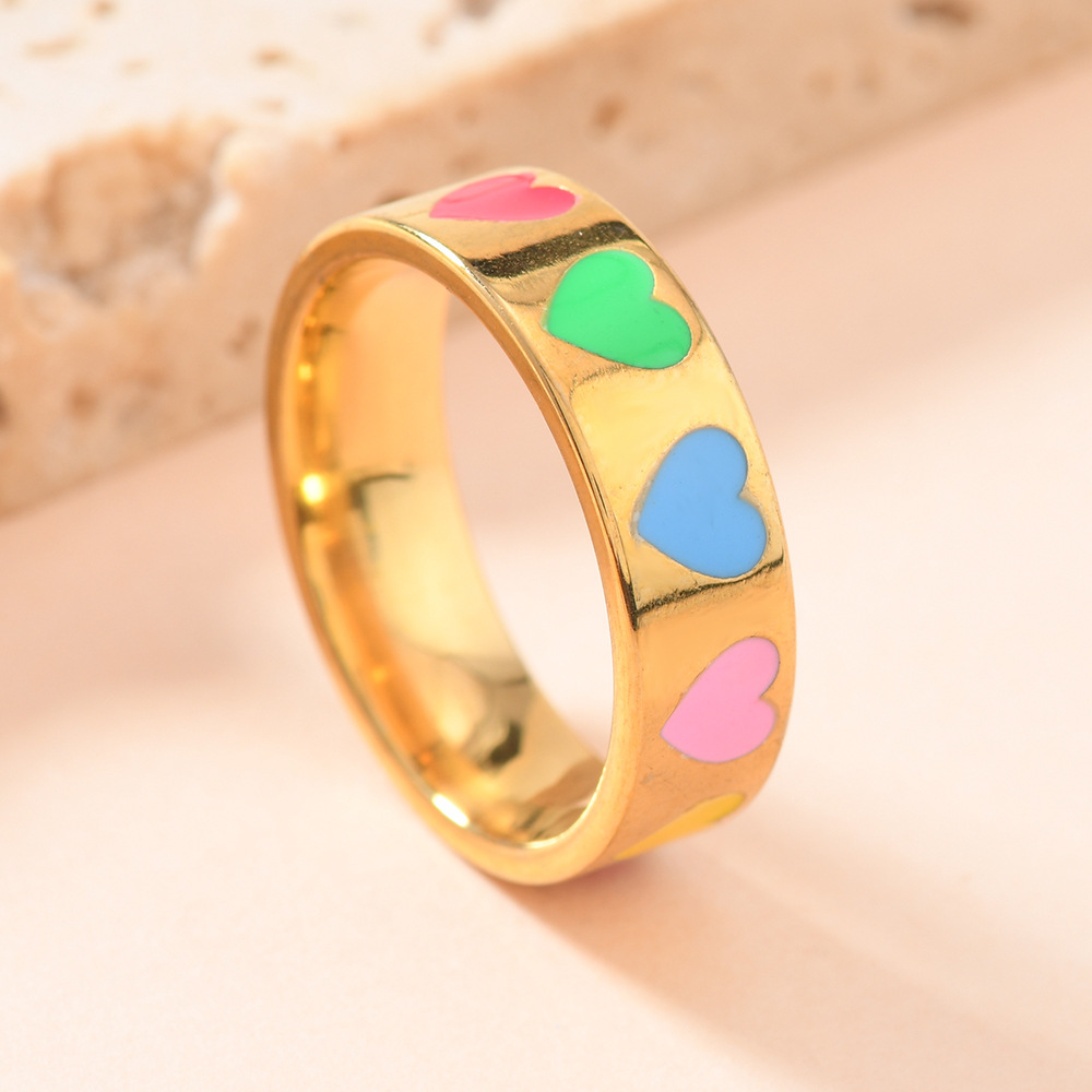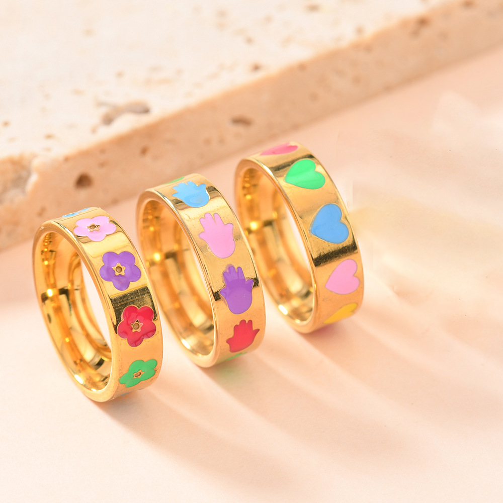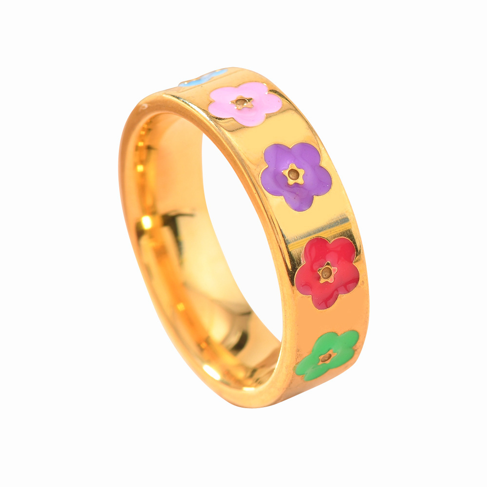 304 acciaio inox anello, placcato color oro, diversi modelli per la scelta & per la donna & smalto, multi-colore, wide:6mm, Misura:8, Venduto da PC