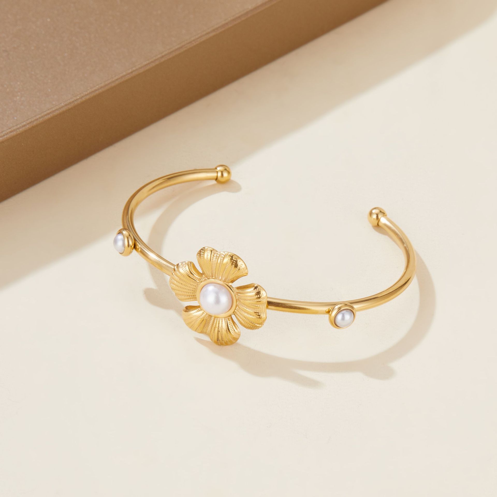 304 acciaio inox braccialetto da polso, with perla in plastica, placcato color oro, gioielli di moda & diversi modelli per la scelta, dorato, Venduto da PC