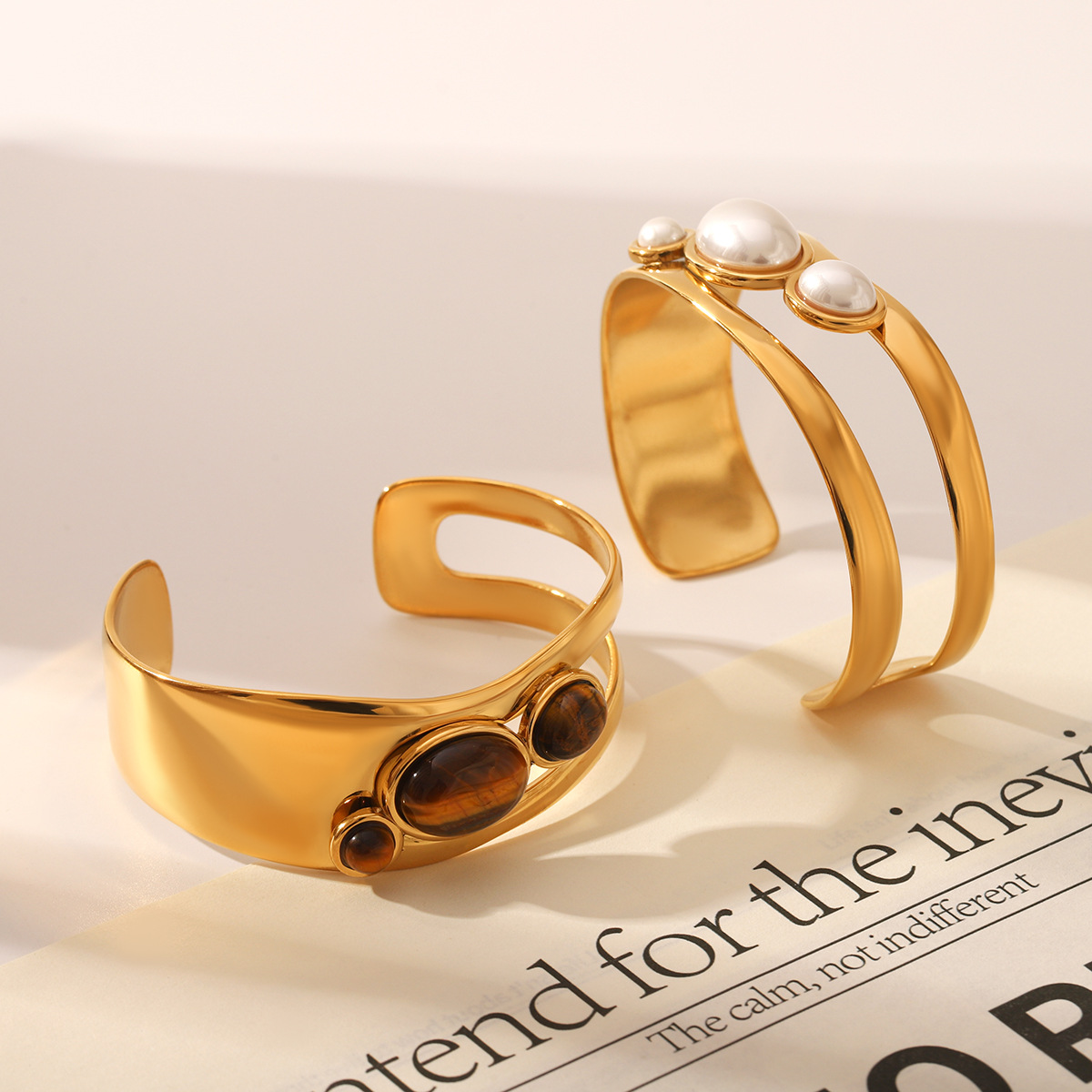 Braccialetto dell'acciaio inossidabile, 304 acciaio inox, with Perle di plastica ABS, placcato color oro, gioielli di moda & diversi modelli per la scelta, dorato, Venduto da PC