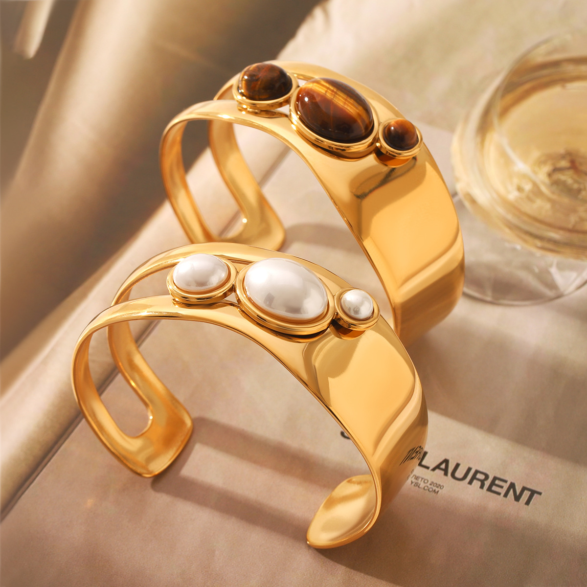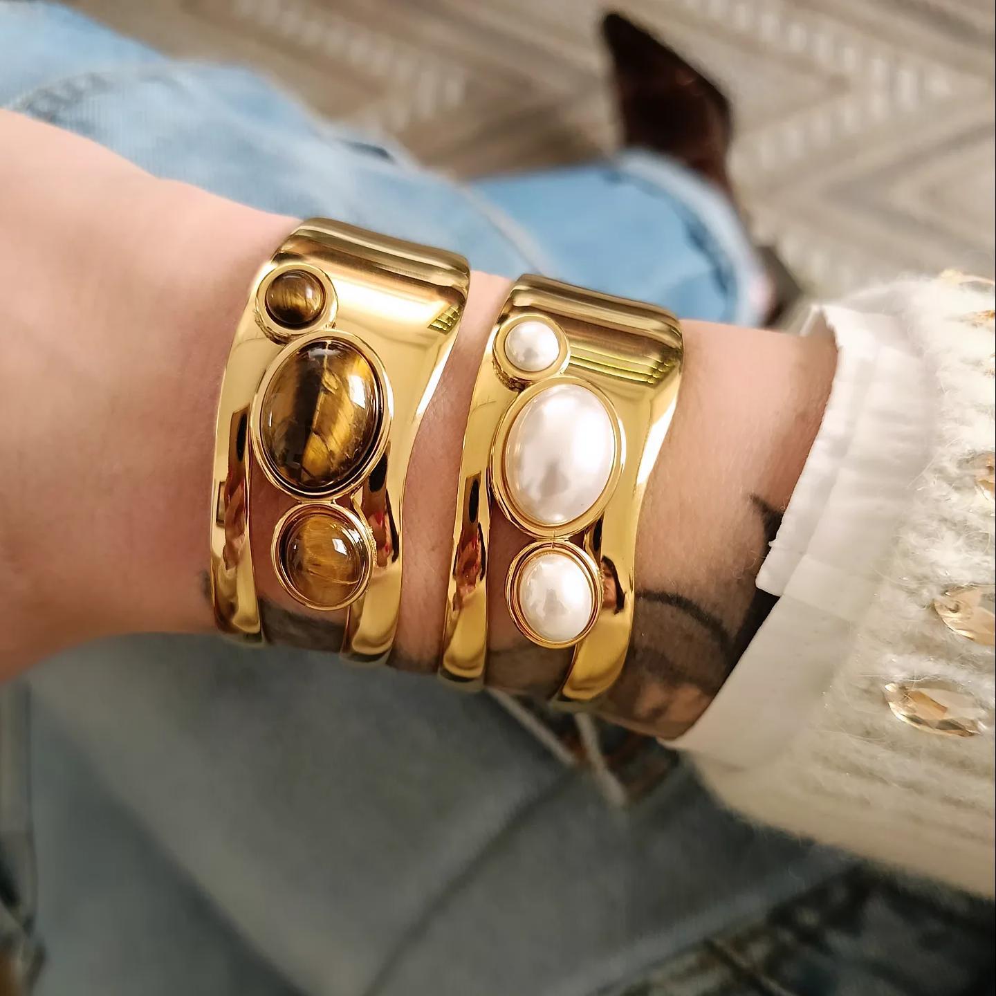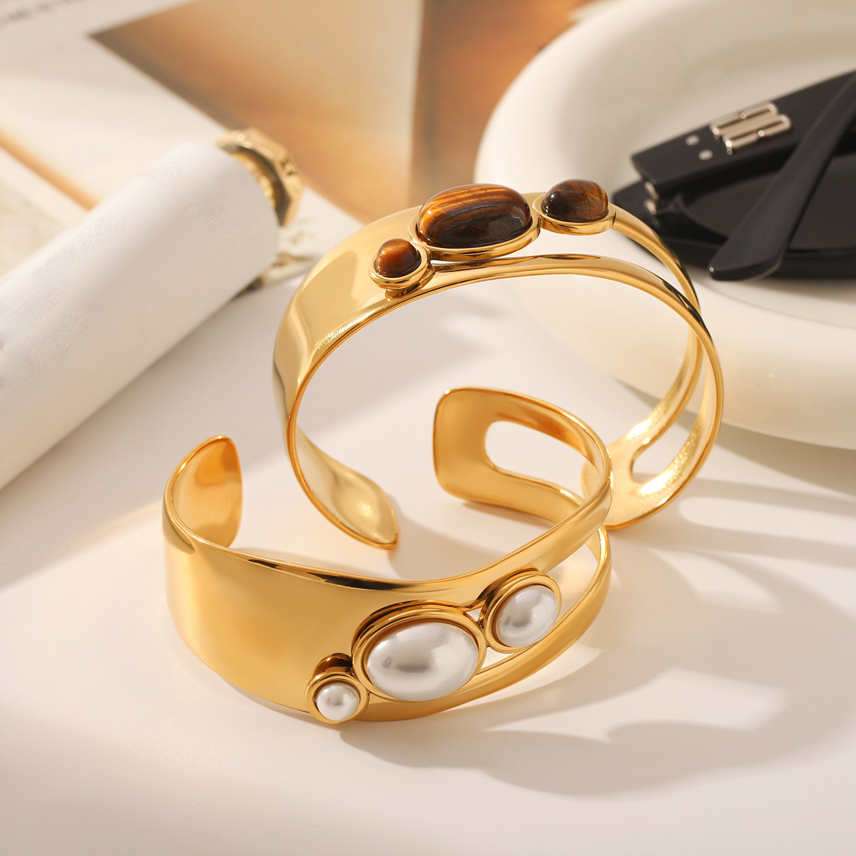 304 acciaio inox braccialetto da polso, with occhio di tigre, materiali diversi per la scelta & per la donna & cavo, dorato, Venduto da PC