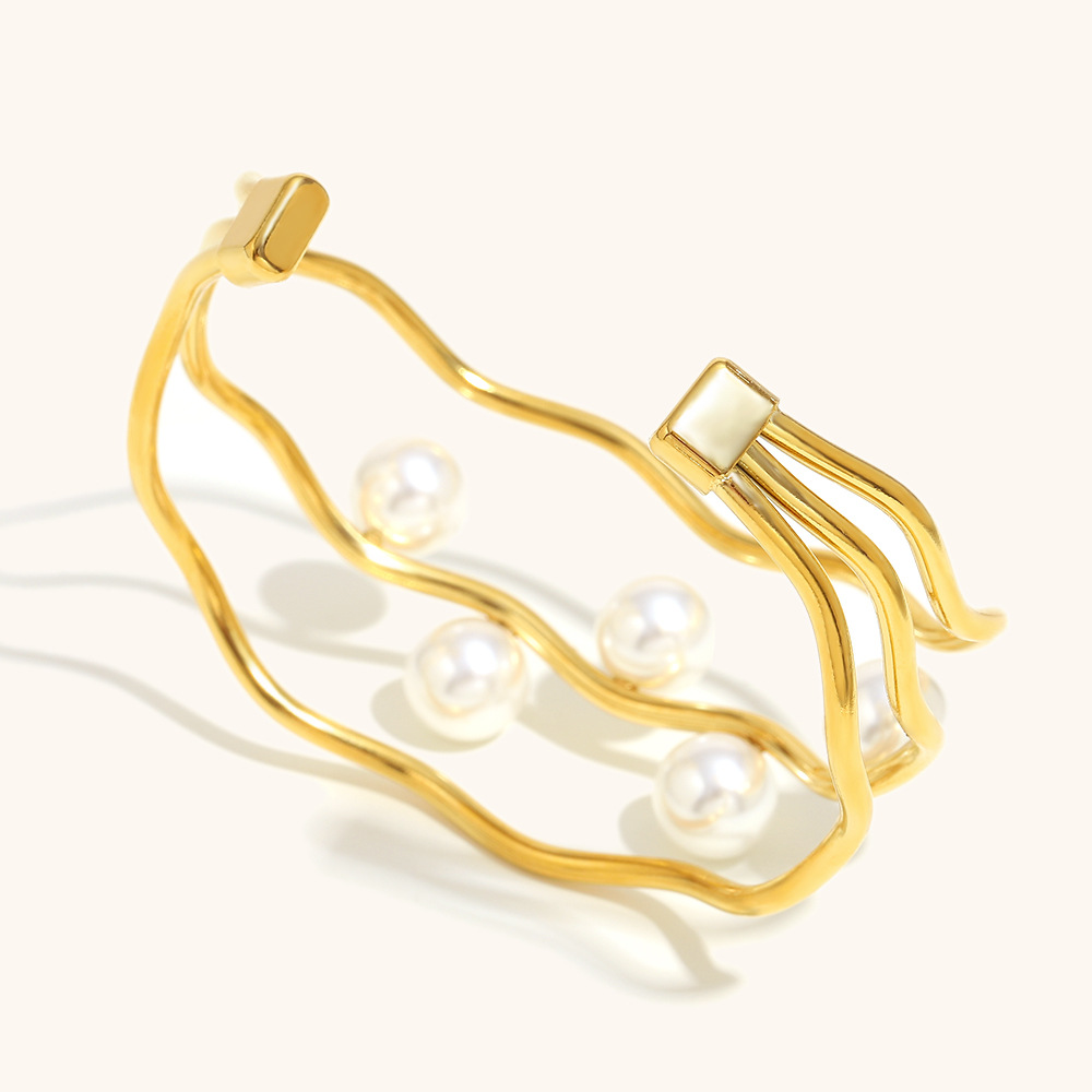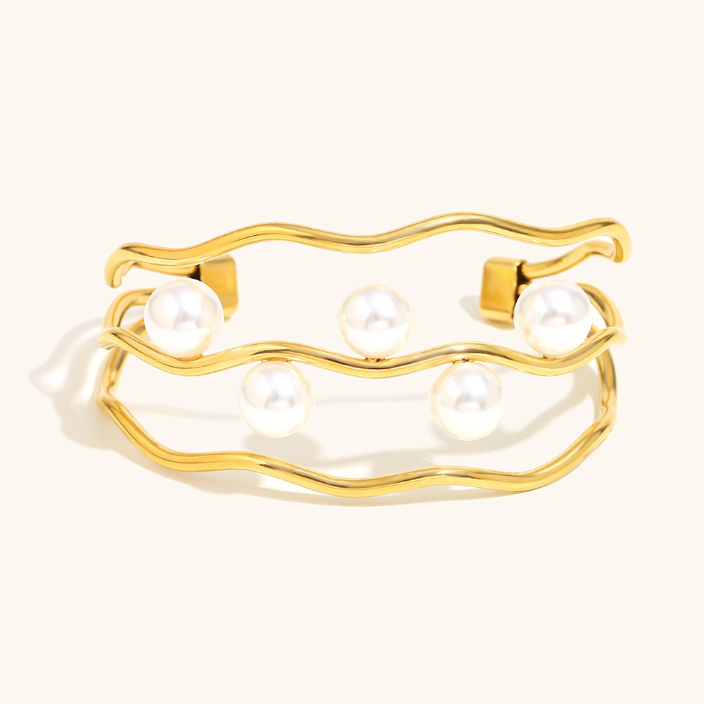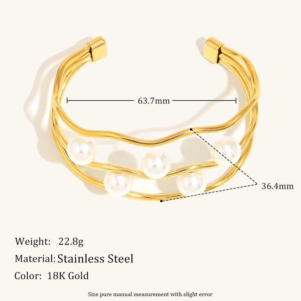 304 acciaio inox braccialetto da polso, with perla in plastica, Placcato oro 18K, tre strati & gioielli di moda & per la donna, Venduto da PC