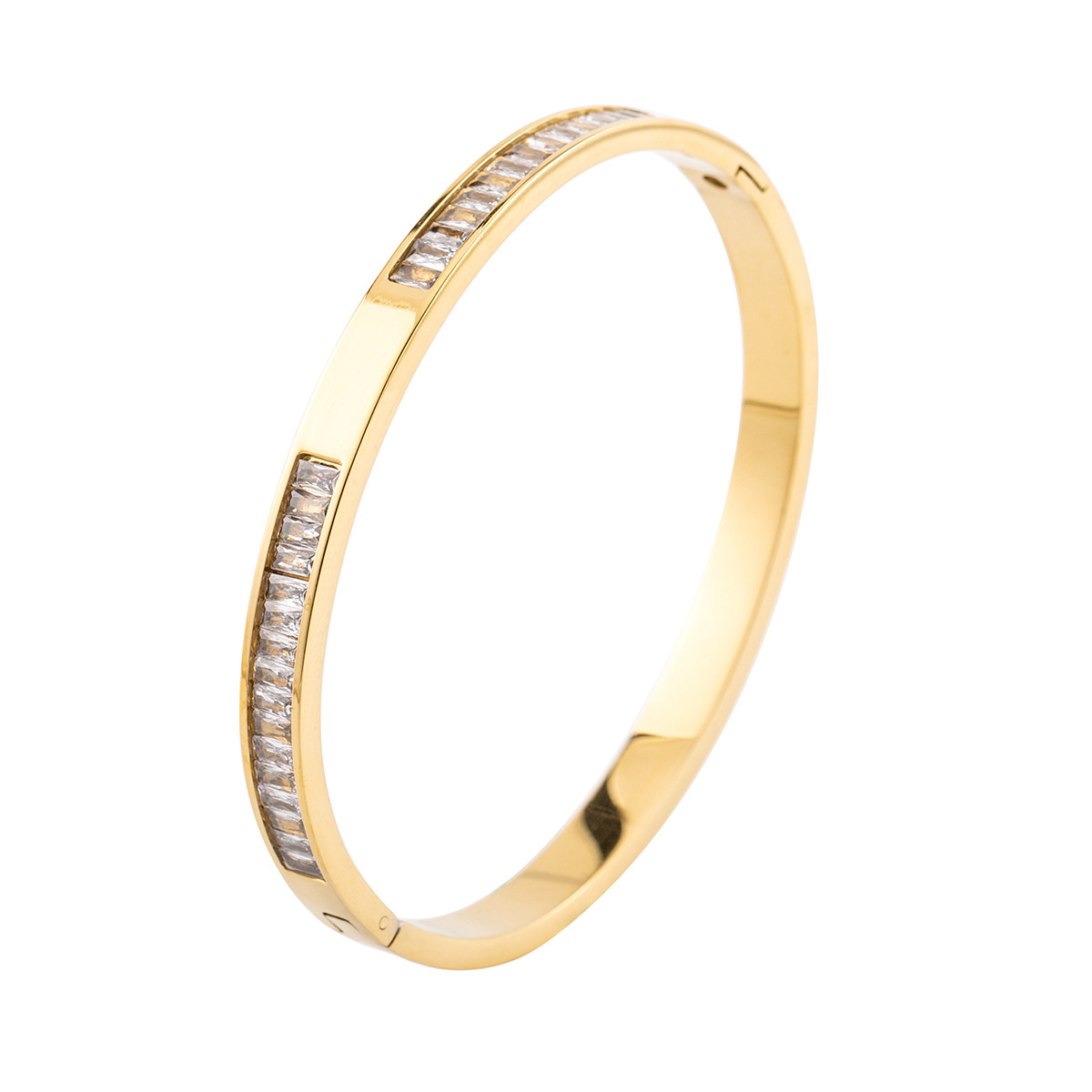 304 acciaio inox bracciale, placcato, Micro spianare cubic zirconia & per la donna, nessuno, Diametro interno:Appross. 65x55mm, Venduto da PC