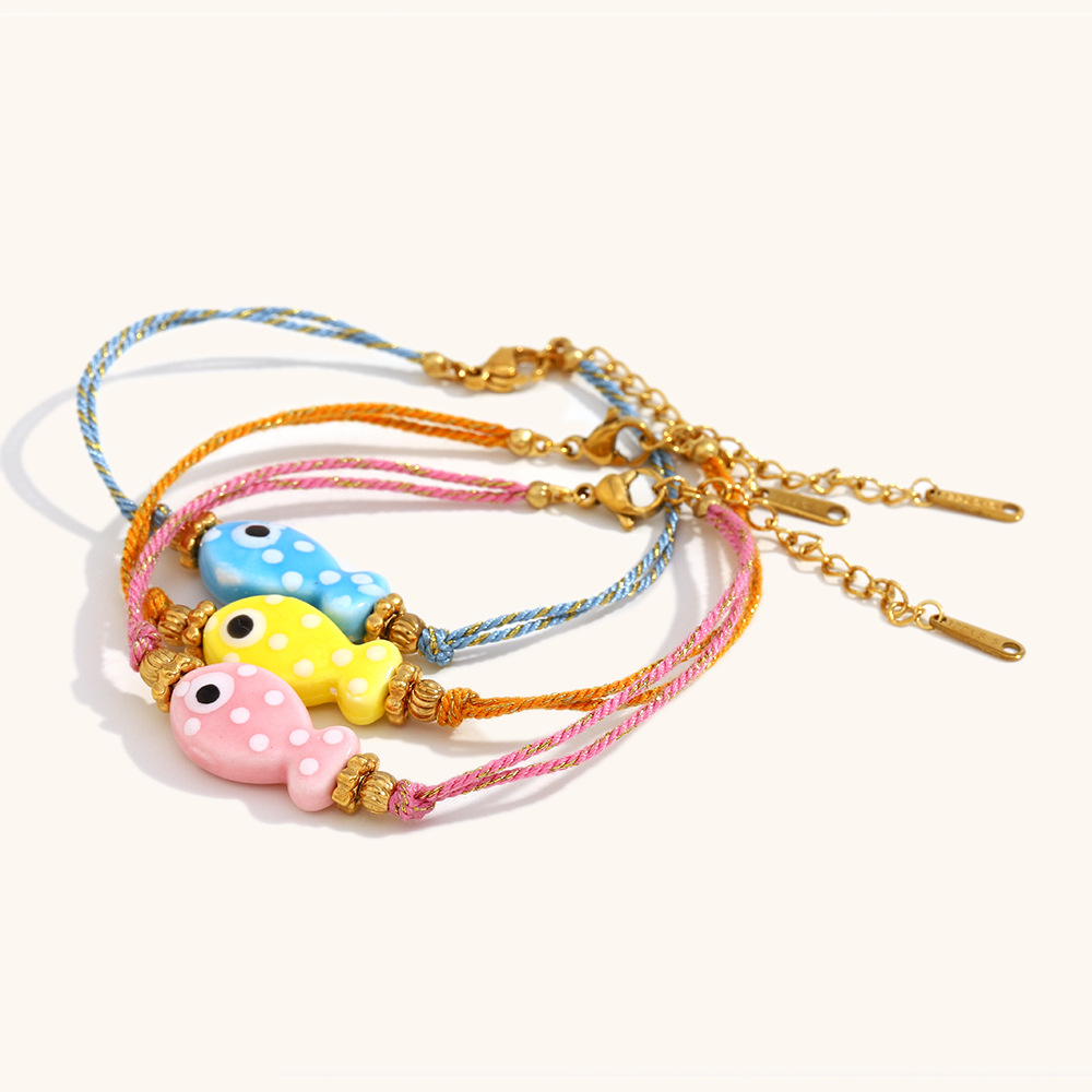 304 acciaio inox braccialetto, with vetro lavorato, Pesce, placcato, gioielli di moda & smalto, colori misti, Venduto da PC